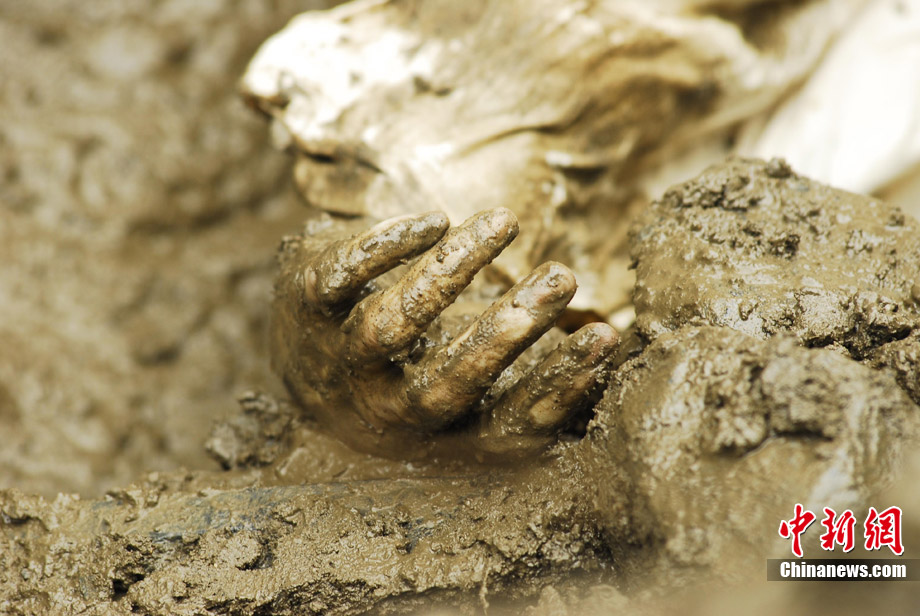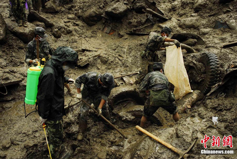 8月18日临晨1点半左右,云南省怒江傈僳族自治州贡山县普拉底乡发生特大山洪泥石流自然灾害。目前,各项救援工作正有序展开,搜救正在继续。图为8月20日中午,搜救队员在灾害现场又发现一名遇难者遗体。中新社发 田洪 摄