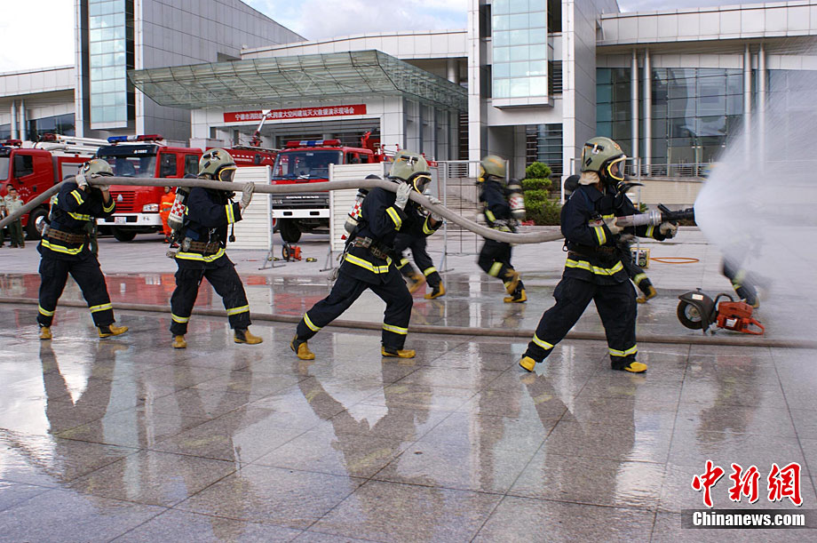 8月19日,福建省宁德市公安消防支队在宁德会展中心举行大跨度大空间建筑灭火救援演练,来自基层消防中队的近30名指挥骨干现场观摩了演练。演练中,56名参演官兵展示了火场侦察、救生、警戒、破拆、排烟、灭火等11个灭火救援项目,提高了部队处置建筑物火灾事故的应急攻坚能力。唐海波 摄