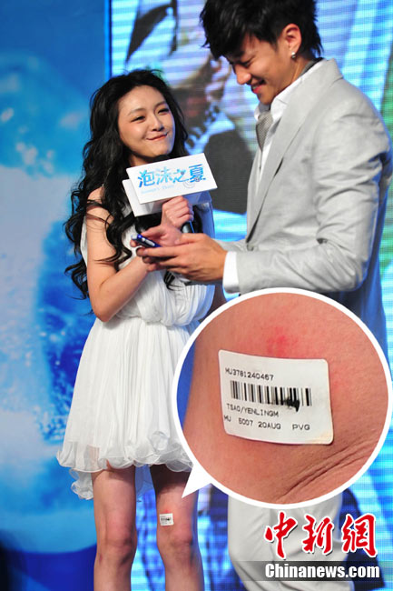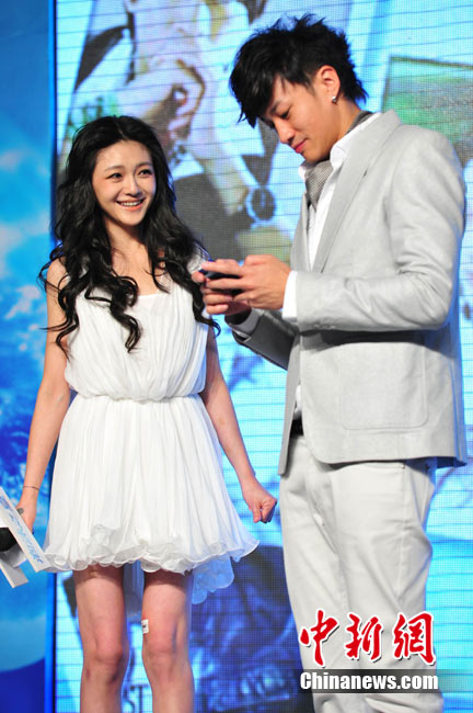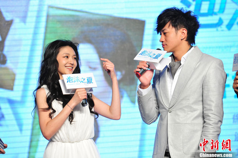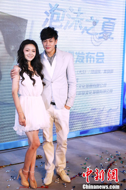 8月25日,偶像剧《泡沫之夏》在北京举行了开播发布会,主演大S与何润东出席。时尚女王大S浪漫卷发和梦幻白裙造型似童话中的公主,与“梦幻泡沫 浪漫之夏”的主题十分贴合。何润东也默契地以西装出席,两人十分登对。活动中,这对不断传出绯闻的荧屏最佳搭档不仅毫不避嫌地互相夸奖,何润东还当众与大S频频用手机自拍亲密合影停不下来,还现场将自拍照上载至微博。中新社记者 李学仕 摄
