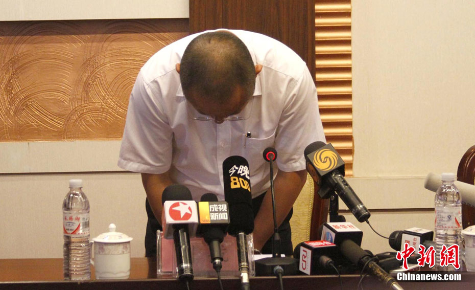 8月26日下午,有关方面在伊春举行“8·24”伊春空难情况通报会。会上河南航空公司监事会主席刘航向全社会道歉。中新社记者 崔颜锋 摄