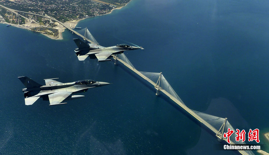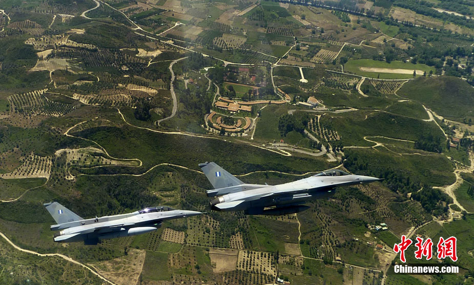 8月26日,希腊两架F-16战斗机在克里特岛南部空中相撞,一名飞行员成功从飞机上跳下逃生。图为希腊F-16战斗机的资料图。
