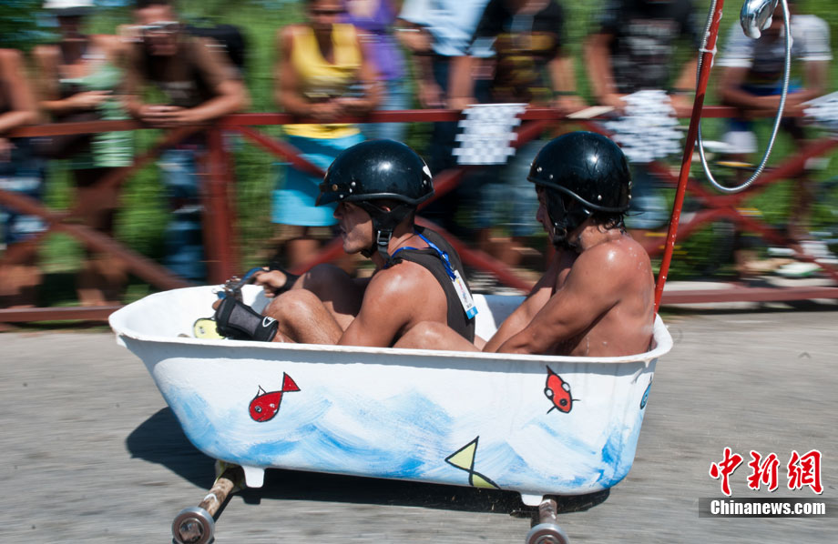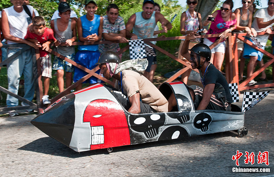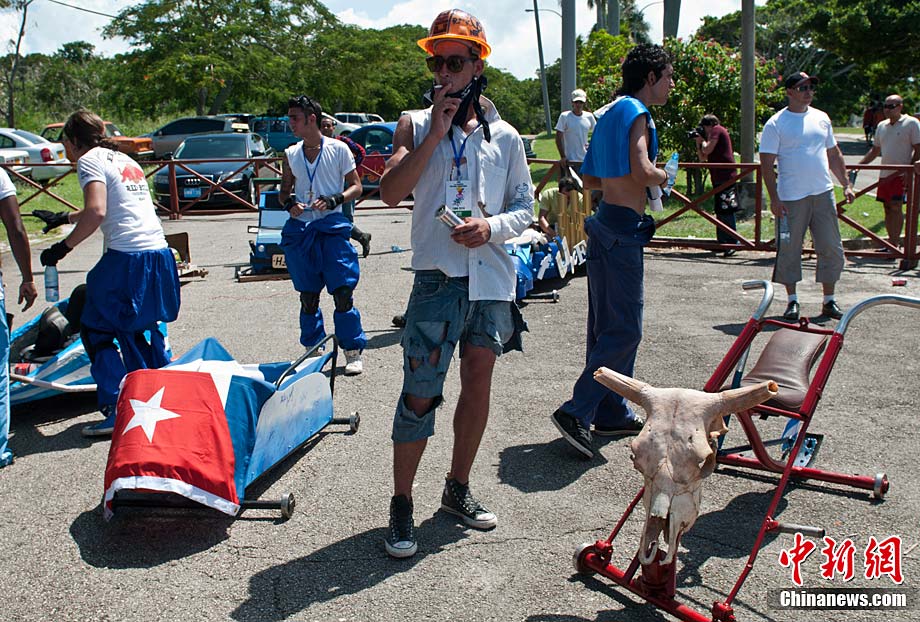 当地时间8月27日,古巴首都哈瓦那举行了首届无动力自制小车大赛。82名参赛选手驾驶着41辆自制小车参赛。