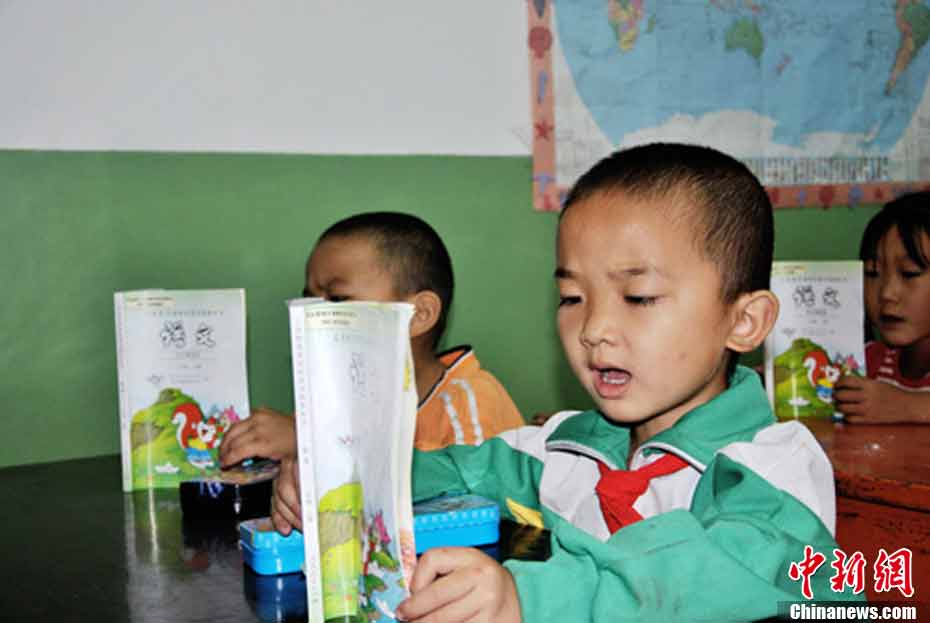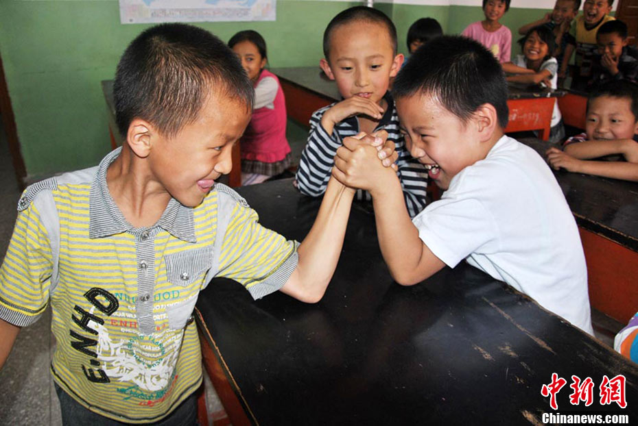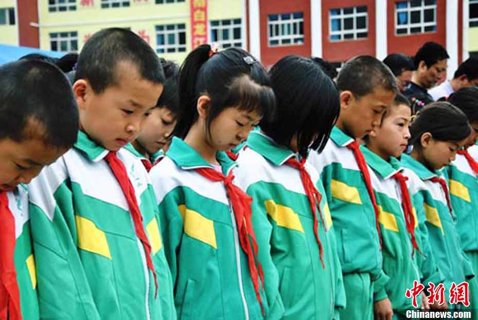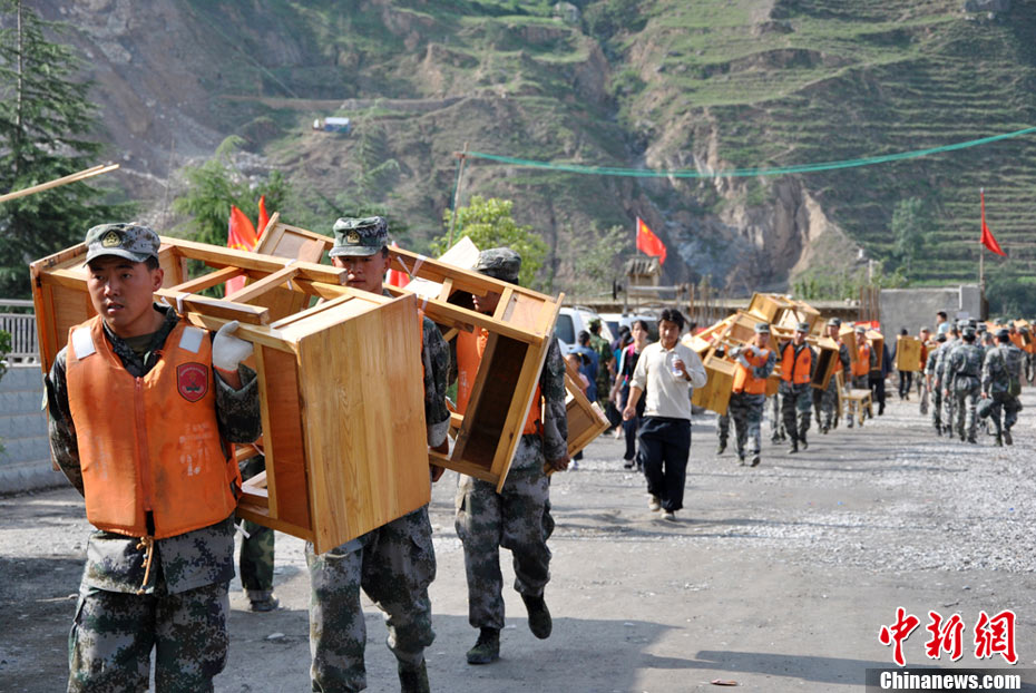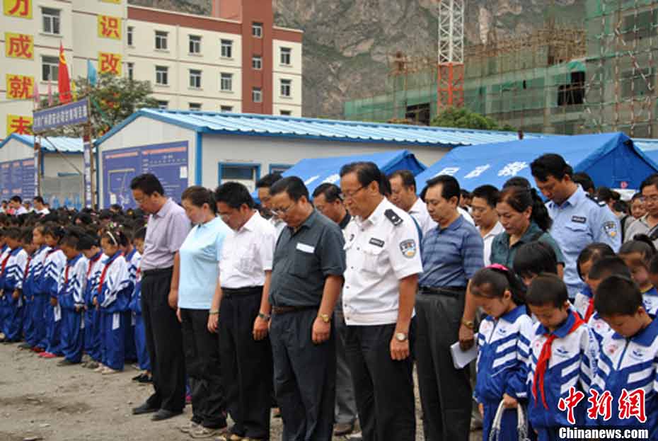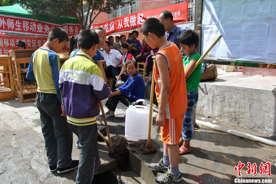 近日,随着河道清淤工作的进展,白龙江水位明显下降,舟曲城关二小被淹的教学楼逐渐露出面目。图为水位消退后的城关二小。中新社发 马晓俊 摄