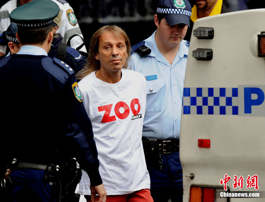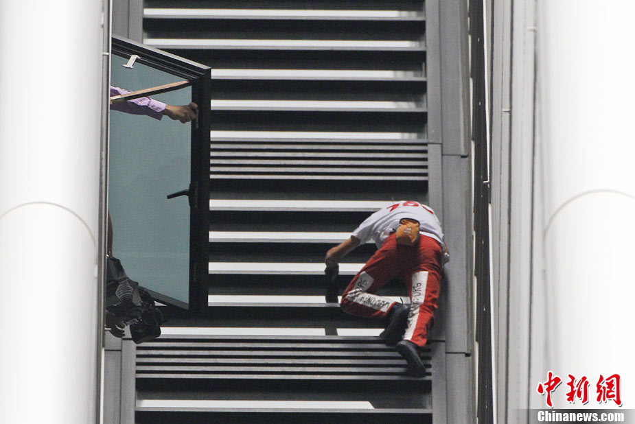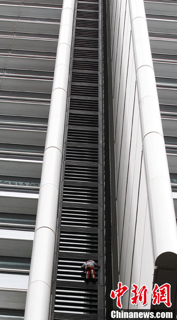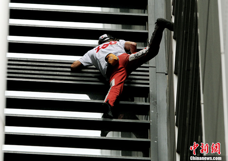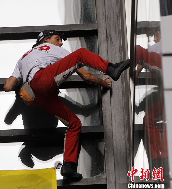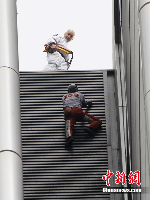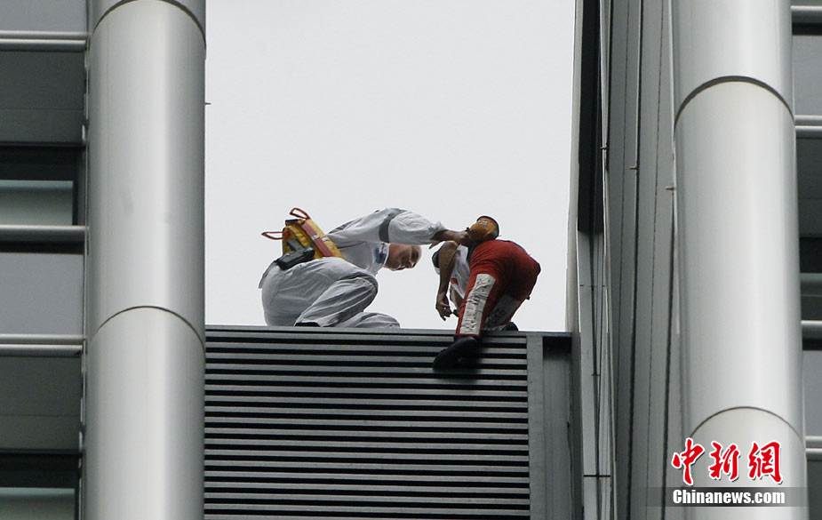 8月30日,悉尼,现年48岁的法国“蜘蛛侠”阿兰·罗伯特攀爬悉尼最高住宅大楼57层高的Lumiere大楼。当罗伯特爬上大楼楼顶,便遭到警方逮捕。据悉,到目前为止,罗伯特已经成功地在世界各地爬上了共计70座高层建筑,包括纽约帝国大厦、芝加哥西尔斯大厦(Sears Tower)及马来西亚吉隆坡的双子塔等。
