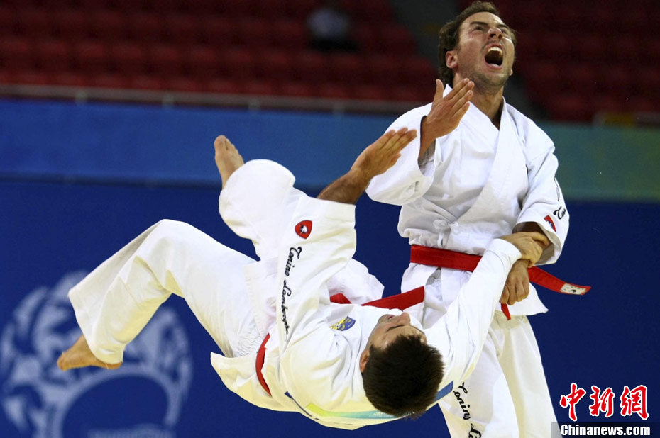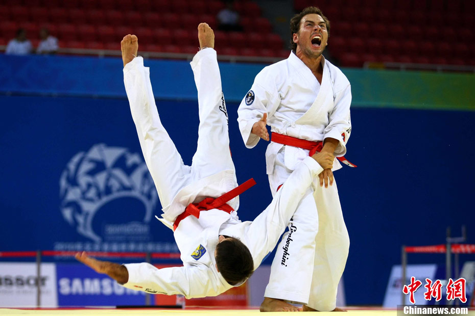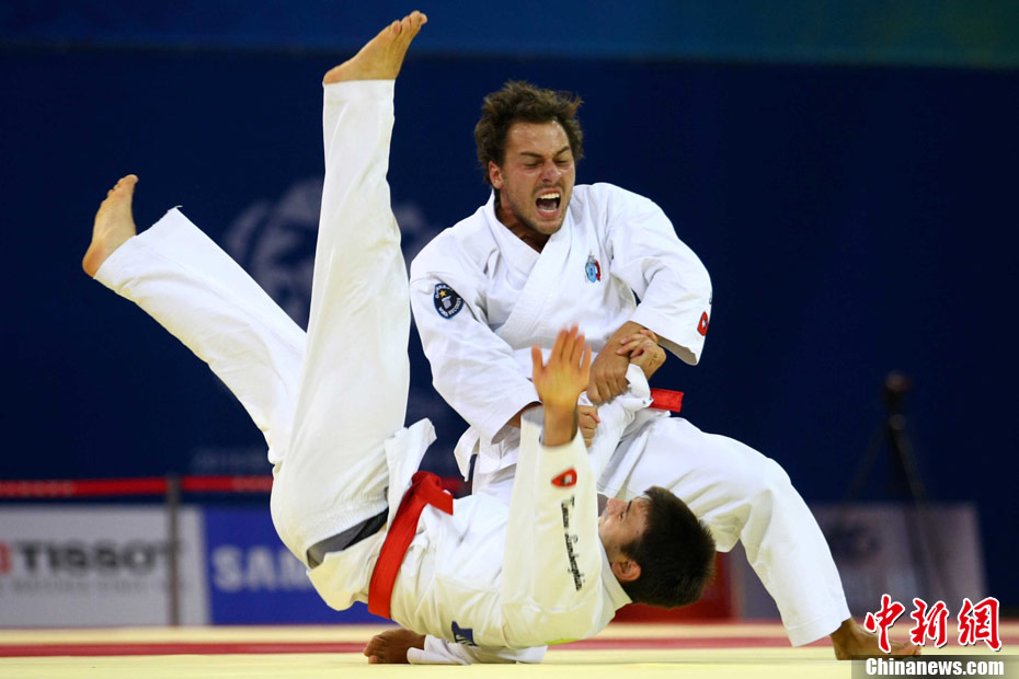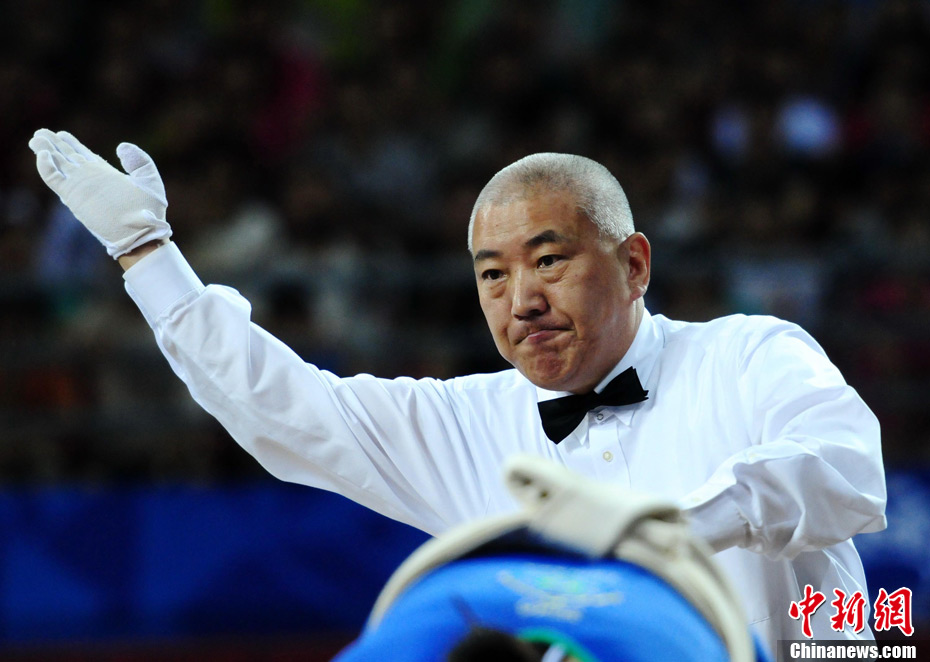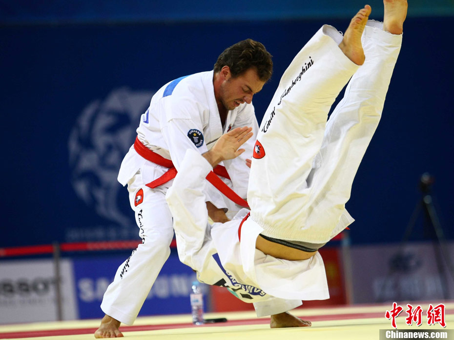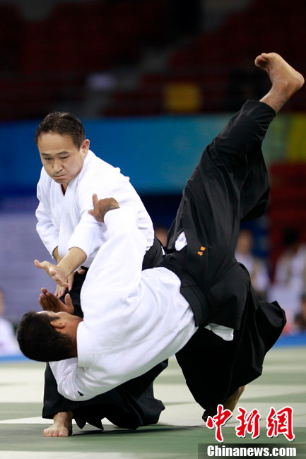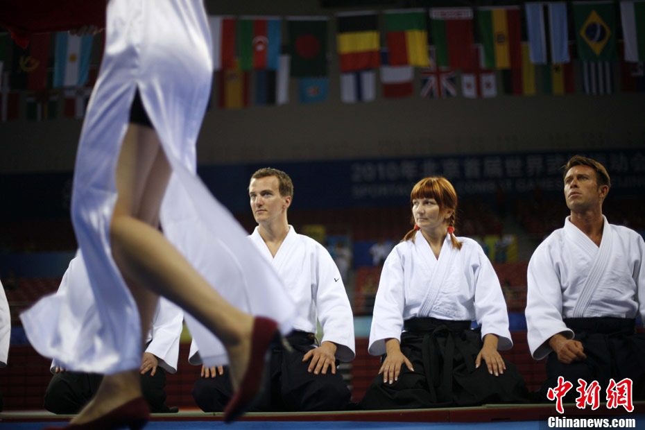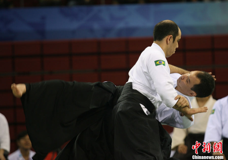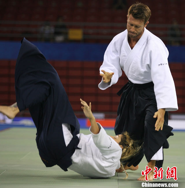 8月30日,男女选手在北京武搏会合气道比赛上演了“异性对决”。合气道是一种根源于日本大东流合气柔术的近代武术,合气道不注重比赛的胜负,没有跟别人较量的思想,而是跟他人一起锻炼和修养自己,因此才会有鲜见的异性同场对决的场面出现。本次武搏会,合气道将作为表演项目,无特别的规则,因此不能够严格地定义胜利者或者失败者。国际合气道联合会将组织高段教官来评判各项表演,表演赛分为基本技巧、高级技巧和复合技巧等三个单元。 中新社发 苏丹 摄