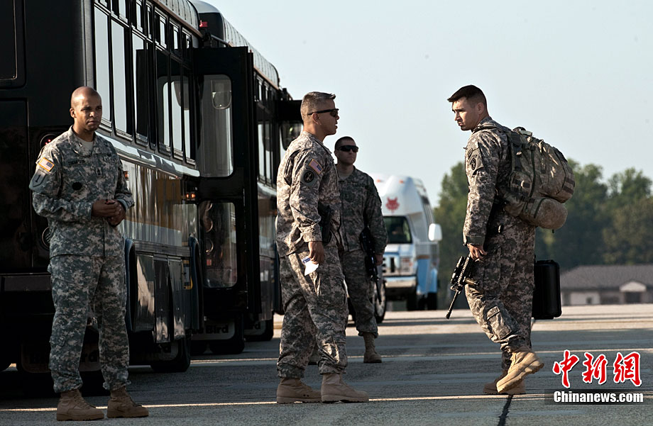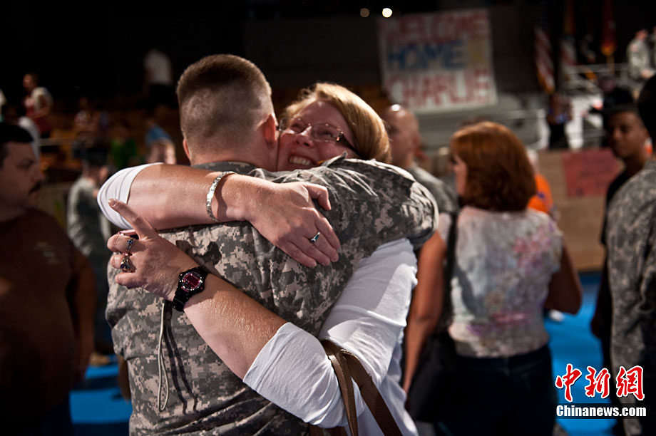 当地时间8月28日,部分驻伊美军战斗部队士兵抵达美国首都华盛顿附近的安德鲁斯空军基地,并与亲属团聚。