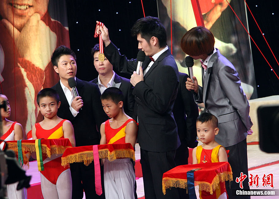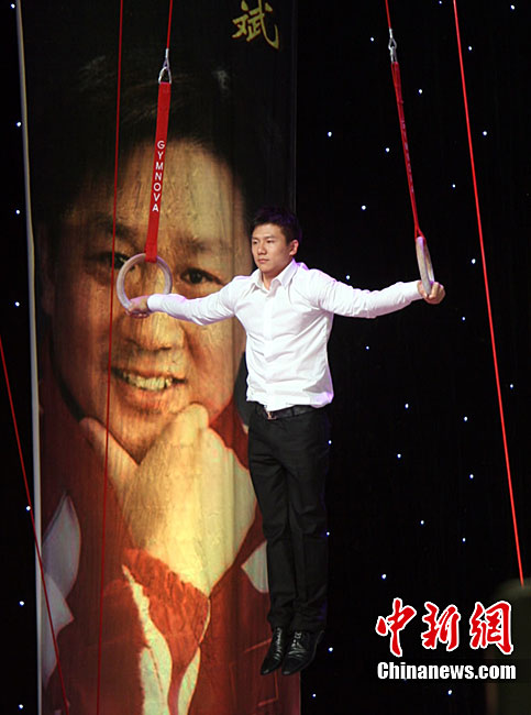 9月1日晚,体操名将李小鹏来到湖南卫视录制退役晚会,向喜欢自己的体操迷们告别。晚会上,中国体操队总教练黄玉斌、体操名将李宁、李小双、杨威、黄旭等体操名将与李小鹏一起回顾了其体操生涯。邓霞 摄