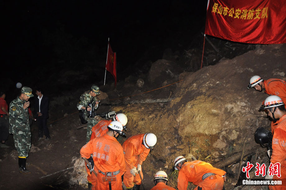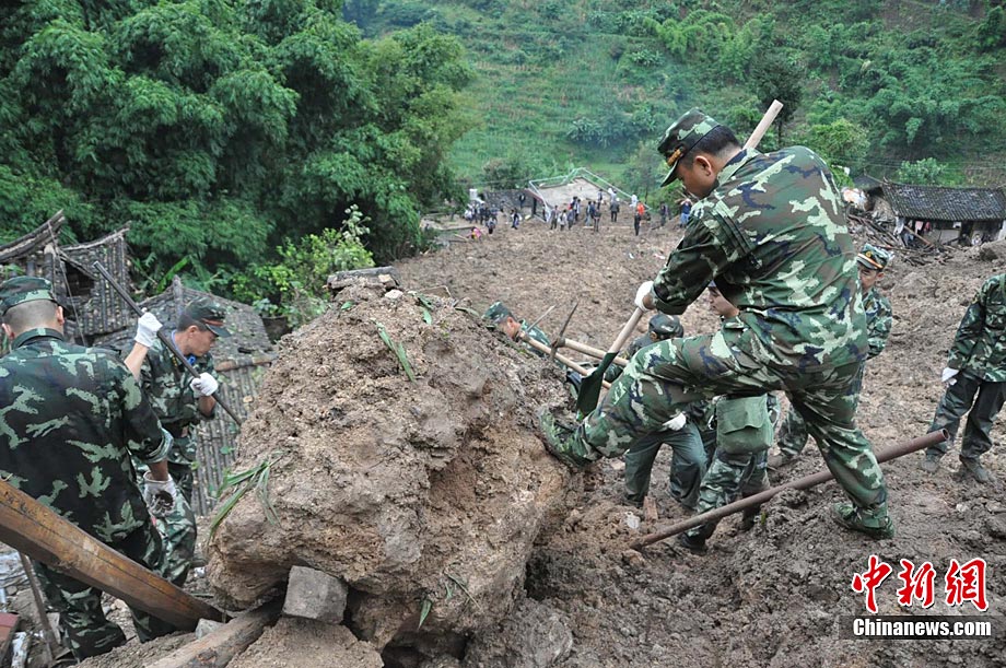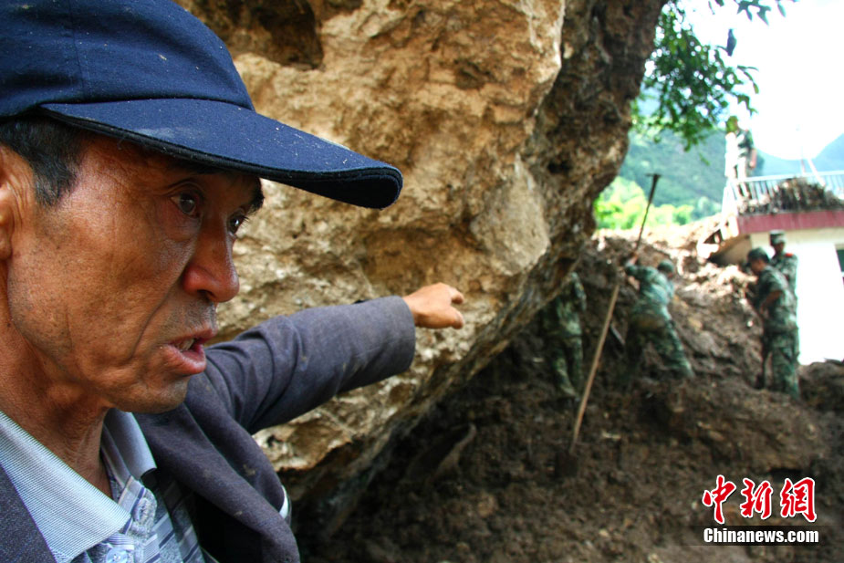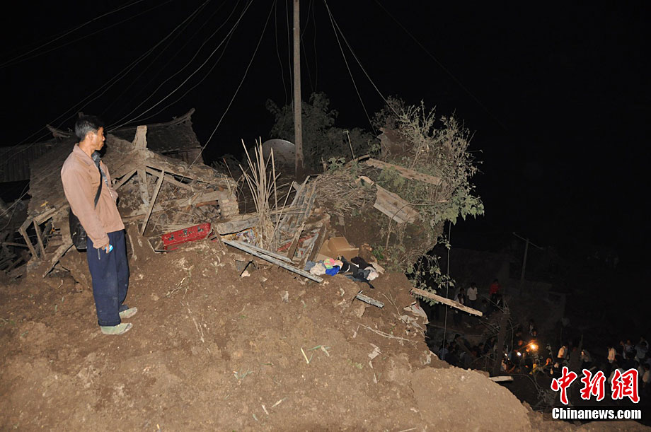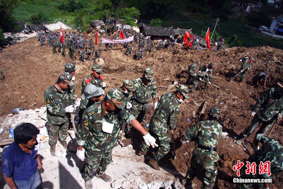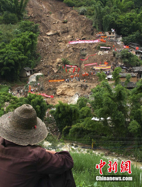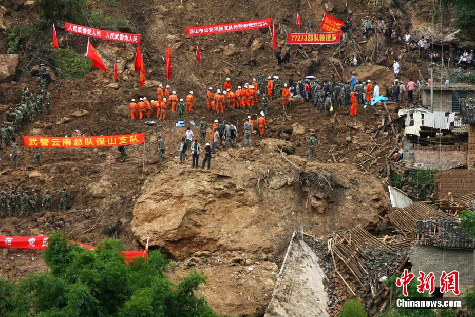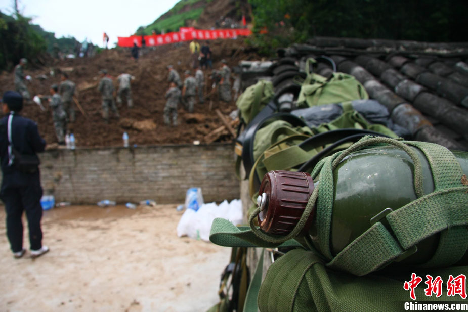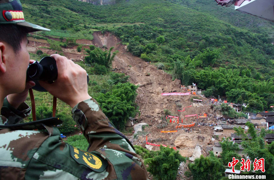 9月1日发生在云南保山隆阳区瓦马村的特大山体滑坡灾害造成该村损毁严重,相关专家鉴定,该区存在重大安全隐患,不适宜再居住。相关专家组日前赶赴灾区,为受灾群众进行灾后重建选址工作。图为地质观测点的武警战士正在监测救援现场地质情况,以防止次生灾害的发生。中新社发 任东 摄