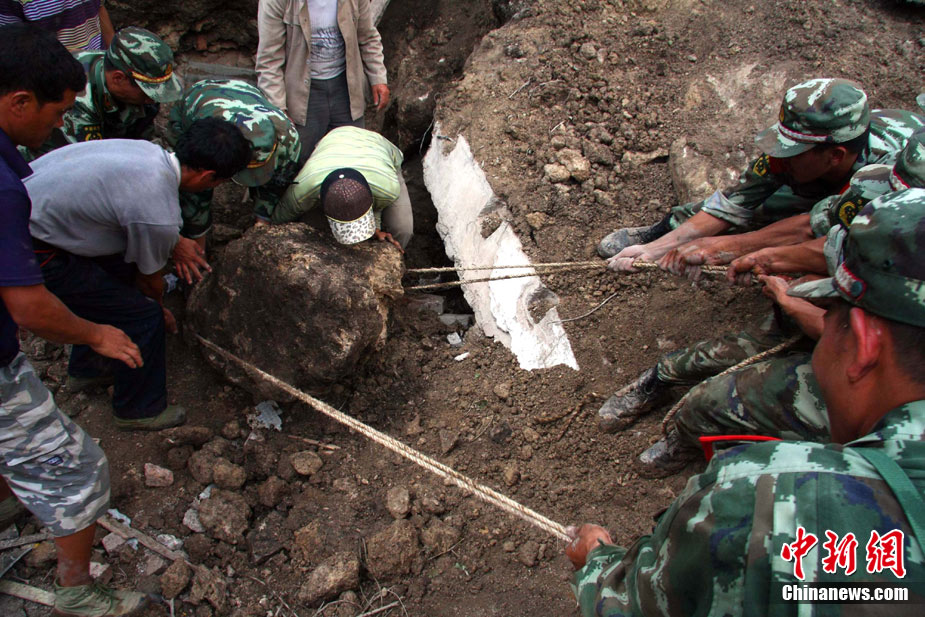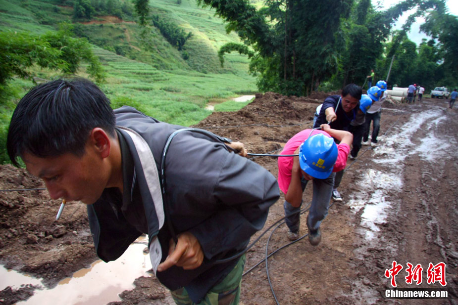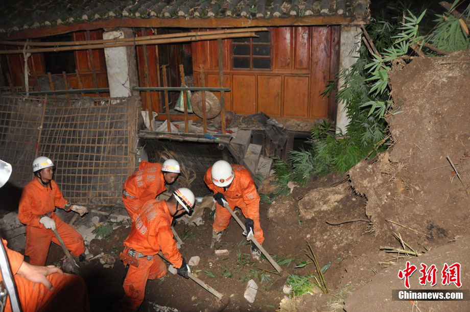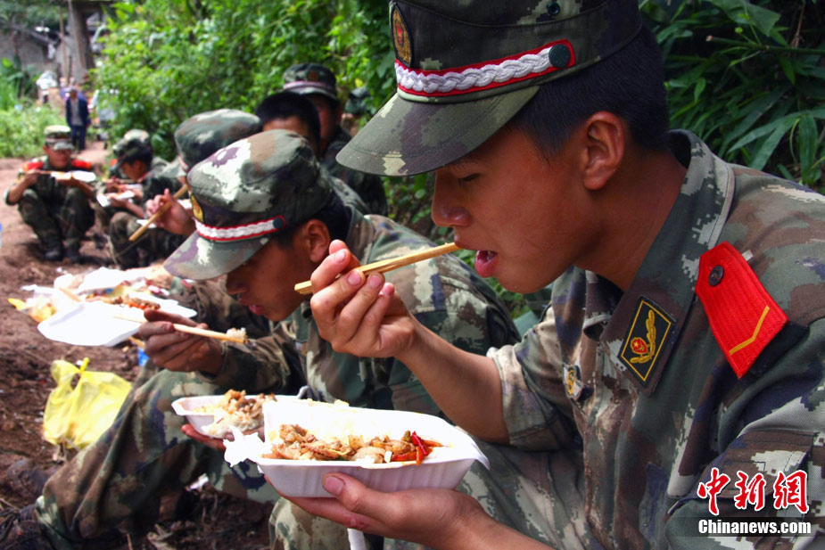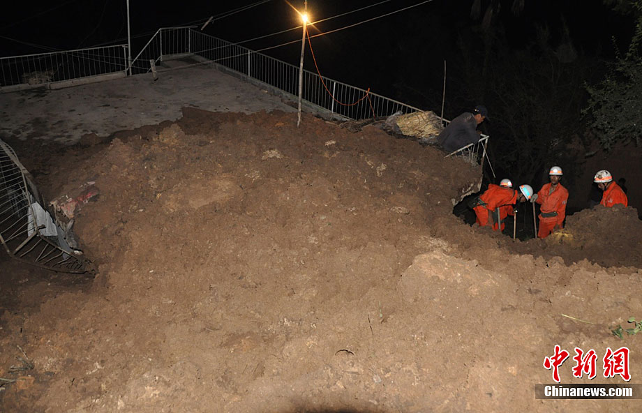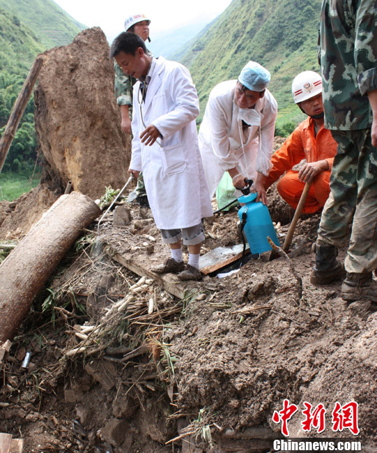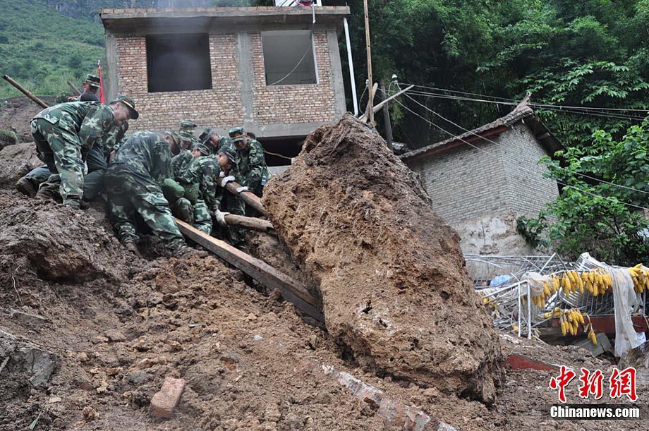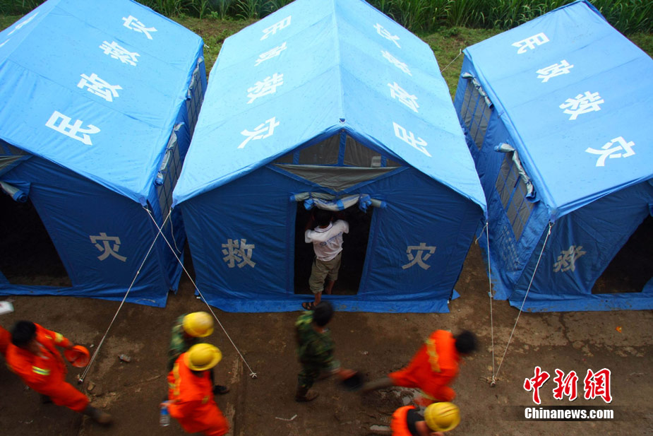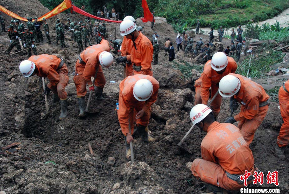9月1日发生在云南保山隆阳区瓦马村的特大山体滑坡灾害造成该村损毁严重,相关专家鉴定,该区存在重大安全隐患,不适宜再居住。相关专家组日前赶赴灾区,为受灾群众进行灾后重建选址工作。图为地质观测点的武警战士正在监测救援现场地质情况,以防止次生灾害的发生。中新社发 任东 摄