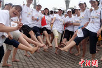 9月4日,一群全副武装、手持铁锤的都市人在长沙世界之窗内广场上疯狂锤砸废旧小铁屋,以此宣泄心中的压力。据悉,为帮助都市人群释放因工作、生活带来的压力和郁闷,长沙世界之窗从当日开始举行为期一个月的减压节。主办方将收集来的摩托车、小车、电视机、洗衣机等废旧设备摆放在预设的场地内,每天召集数十名游客参与其中。 中新社记者 肖前辉 摄