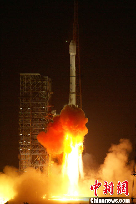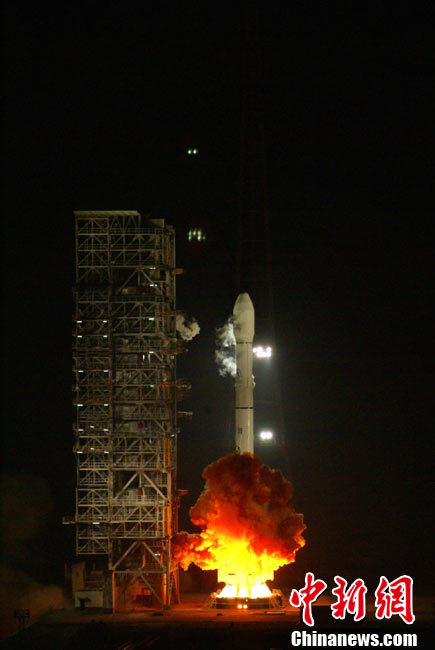 北京时间9月5日0时14分,中国在西昌卫星发射中心用“长征三号乙”运载火箭,将“鑫诺六号”通信广播卫星成功送入太空。中新社发 欧阳开宇 摄