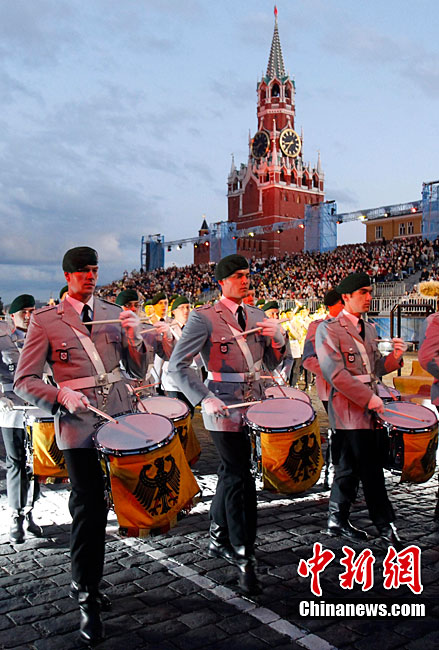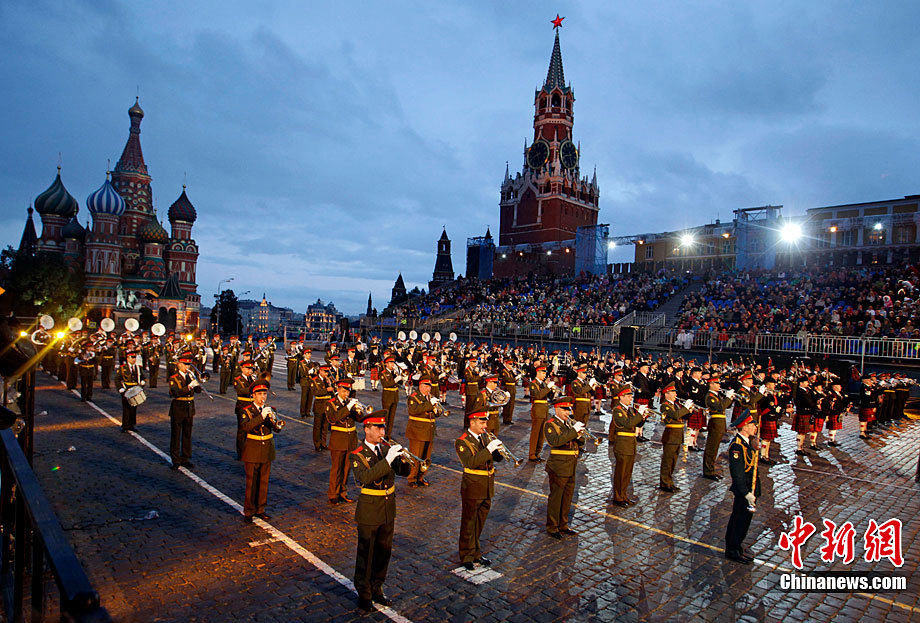 当地时间9月4日,第二届俄罗斯国际军乐节在莫斯科红场开幕。来自俄罗斯、美国、英国、哈萨克斯坦等9个国家的军乐团及演员参加了开幕式演出,为现场的数千名观众奉献了一场精彩纷呈的视听盛宴。