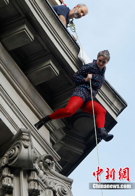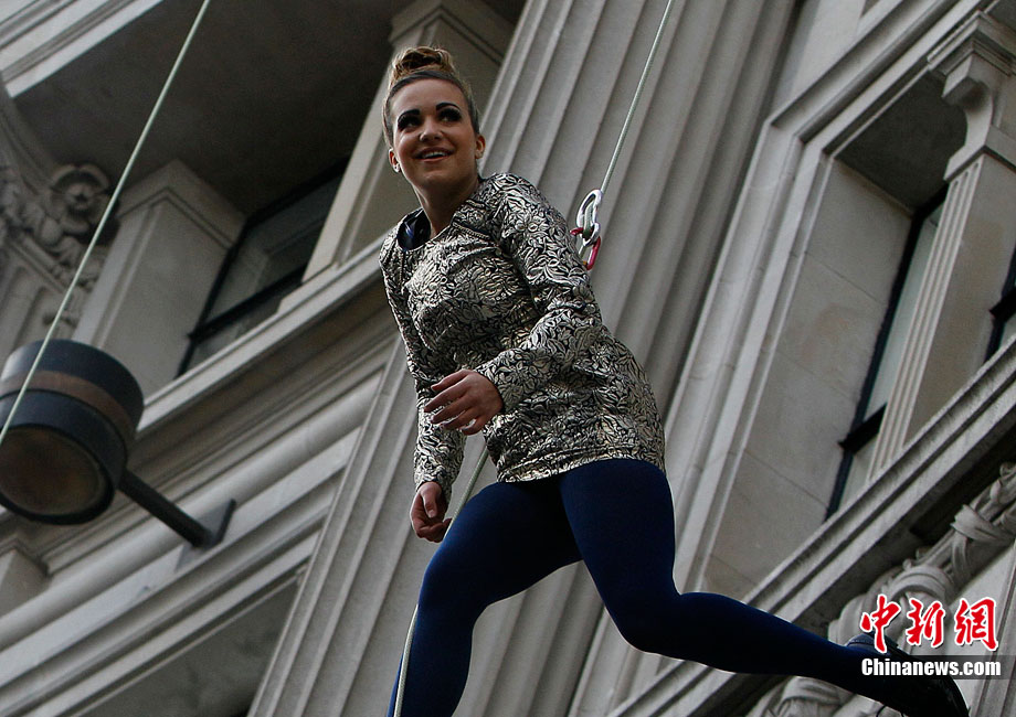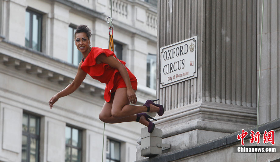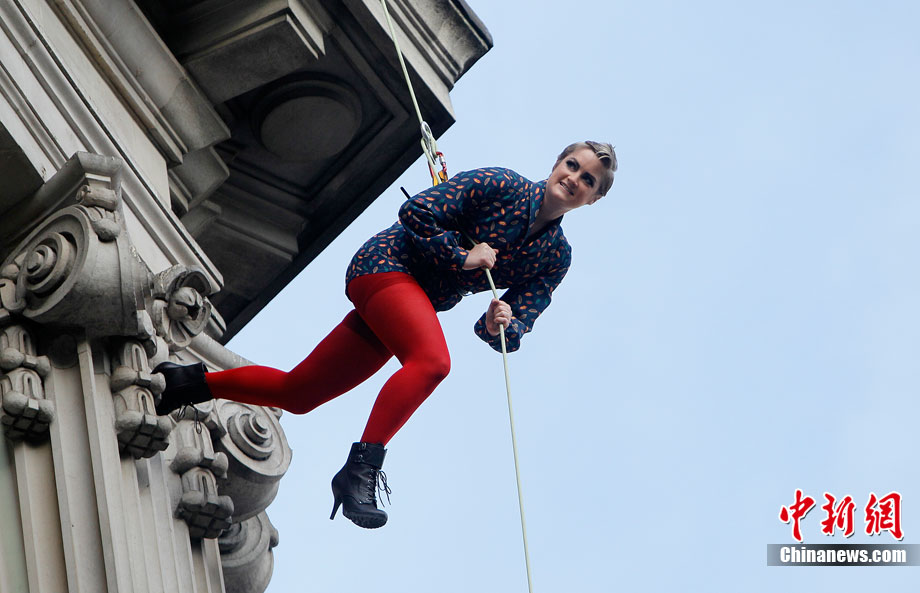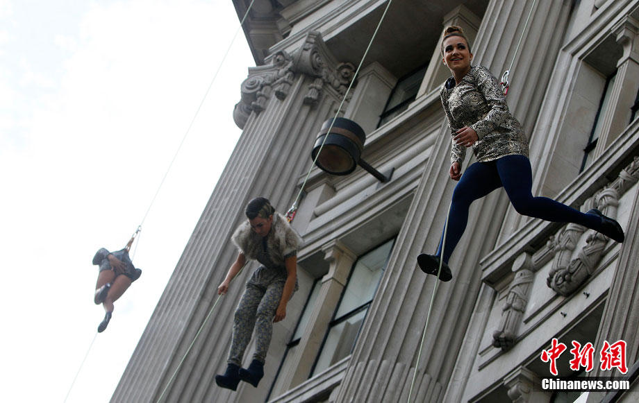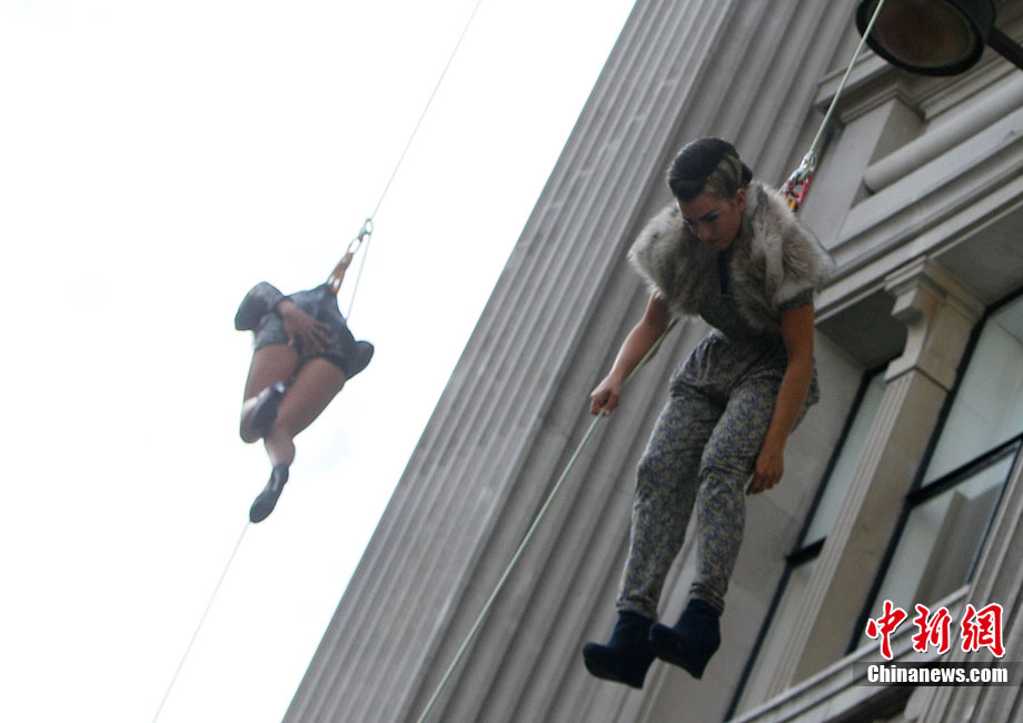 当地时间9月6日,一批模特在英国伦敦挂上钢丝,在大楼外上演了一场精险刺激的空中时装秀。这场时装秀是为了宣传即将到来的英国时装周而特别设计的。