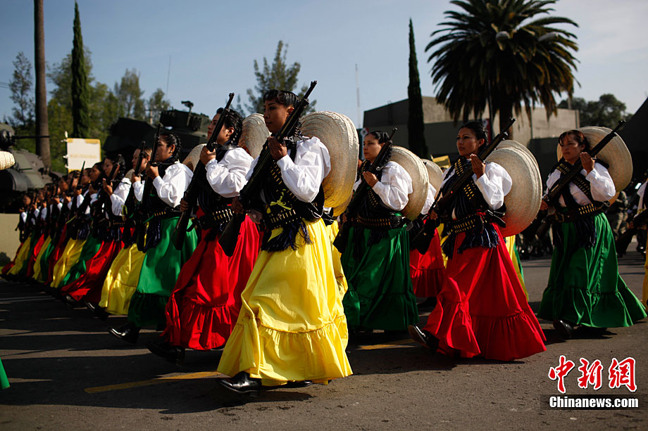 当地时间9月10日,墨西哥独立200周年庆典彩排在墨西哥城举行。这次彩排是为即将于9月16日举行的庆墨西哥独立革命200周年的大阅兵作准备。