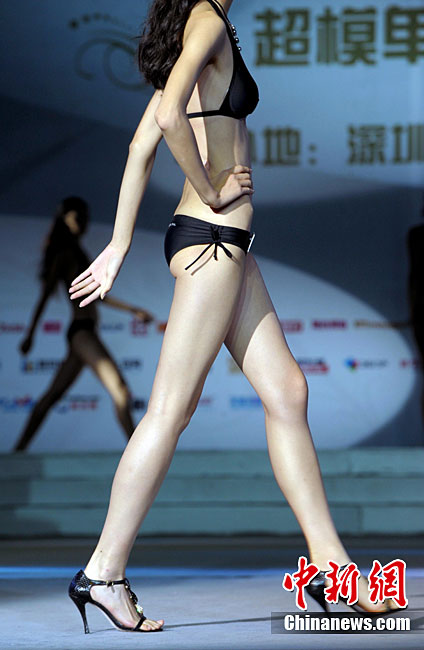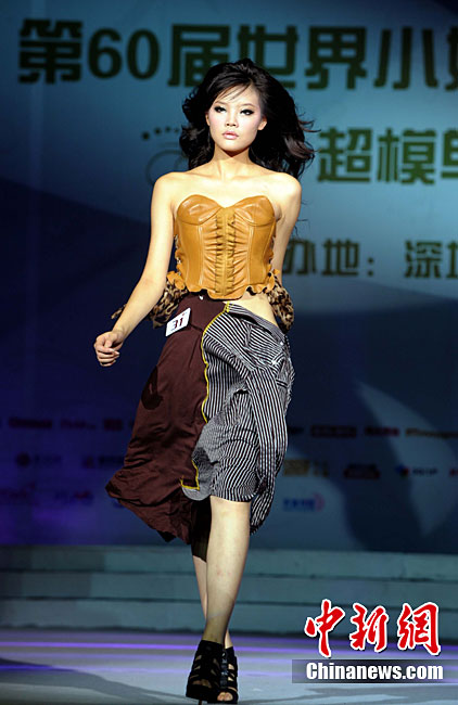 9月11日,32位佳丽在深圳东部华侨城参加第60届世界小姐中国区超模赛,选手通过泳装、环保装、晚礼服展示,22号佳丽顾燕君(中)夺冠,12号孙丹梓(右)和29号钟娇(左)分获亚军季军。中新社记者 陈文 摄
