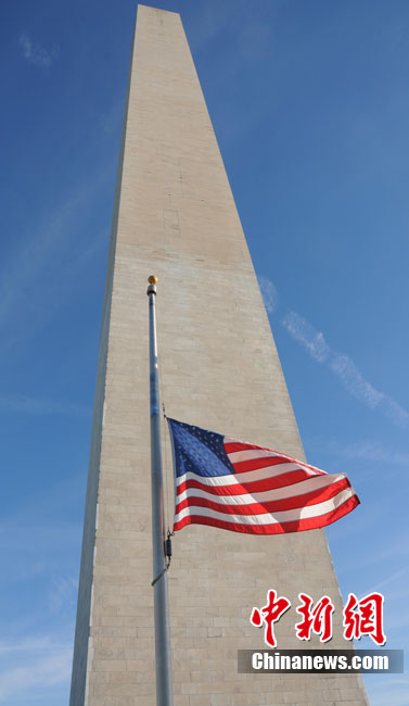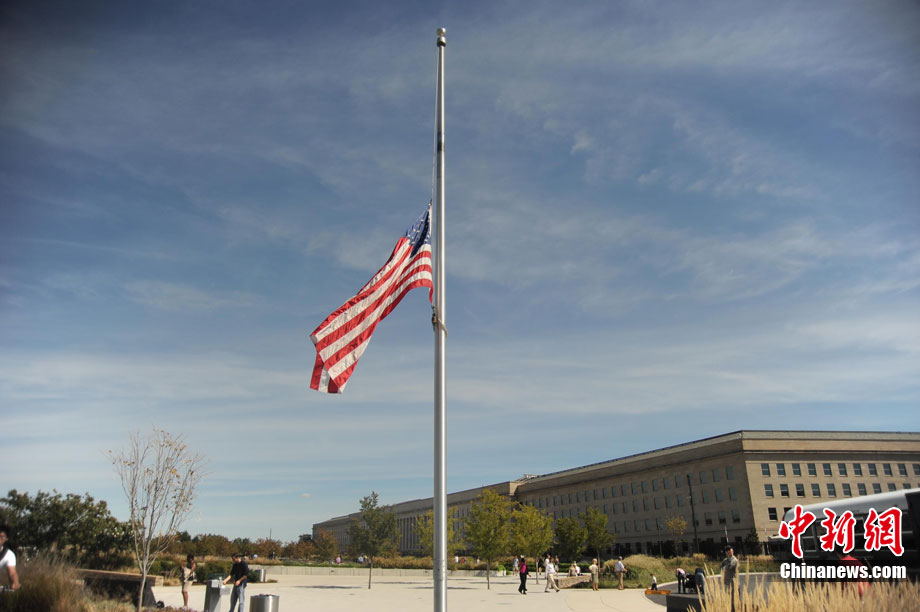 纽约世贸遗址当地时间9月11日上午举行“9·11”事件9周年纪念活动,一面“9·11”事件中残留下来的美国国旗在活动中展示。中新社记者 孙宇挺 摄