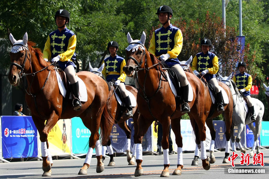 9月12日,第一届王府井国际品牌节的精彩序幕——金宝街嘉年华拉开大幕。由世界顶级豪车组成的超级跑车方阵、盛装骑士马队和主题表演使全长740米的金宝街变成了一个盛大的秀场。此次王府井国际品牌节以“国际品牌 世界城市”为主题,将有来自国内外众多条商业街和国际品牌的代表齐聚北京王府井,共同领略这条商业街的繁华与魅力。中新社记者 富田 摄