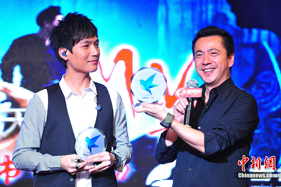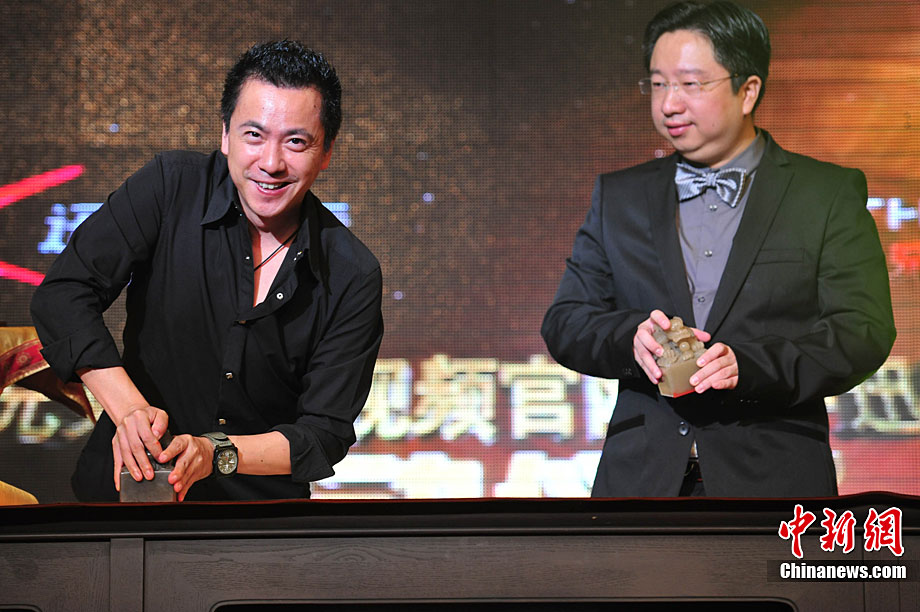 由华谊兄弟出品发行的华语大片《狄仁杰之通天帝国》将于9月29日上映。9月12日,电影主题曲《丹书铁契》MV正式发布,陈楚生将这首颇具古韵的歌曲演绎得气象万千颇具气魄,同时他还在发布会现场演唱电影宣传曲《相忘于江湖》。他透露两首歌的声音与以前不同全因录歌时感冒,而录音师正好希望他的嗓音沧桑一点。华谊兄弟首席视频官网也于当天落户迅雷,有关《狄仁杰之通天帝国》的视频花絮将会在官网上同步更新。图为陈楚生获赠大礼。中新社记者 李学仕 摄