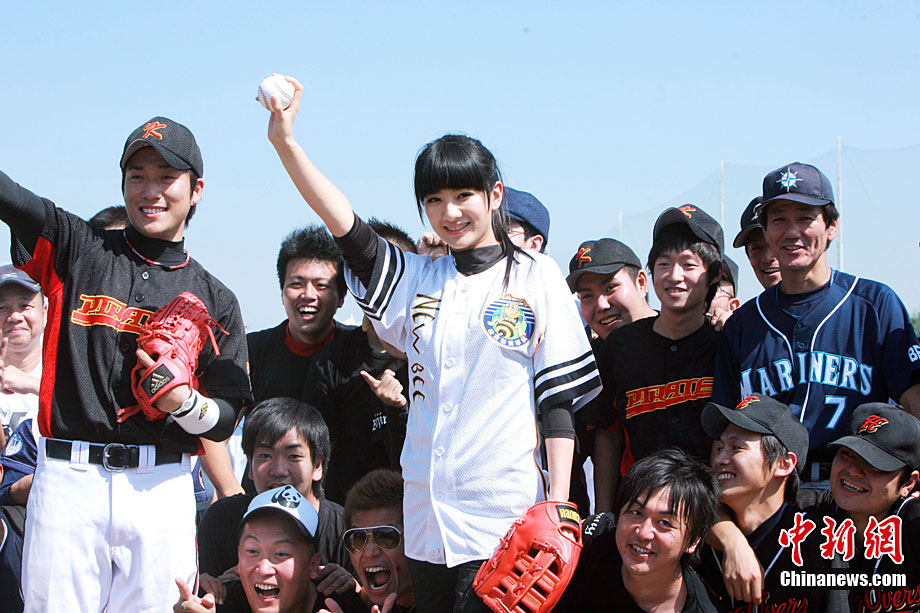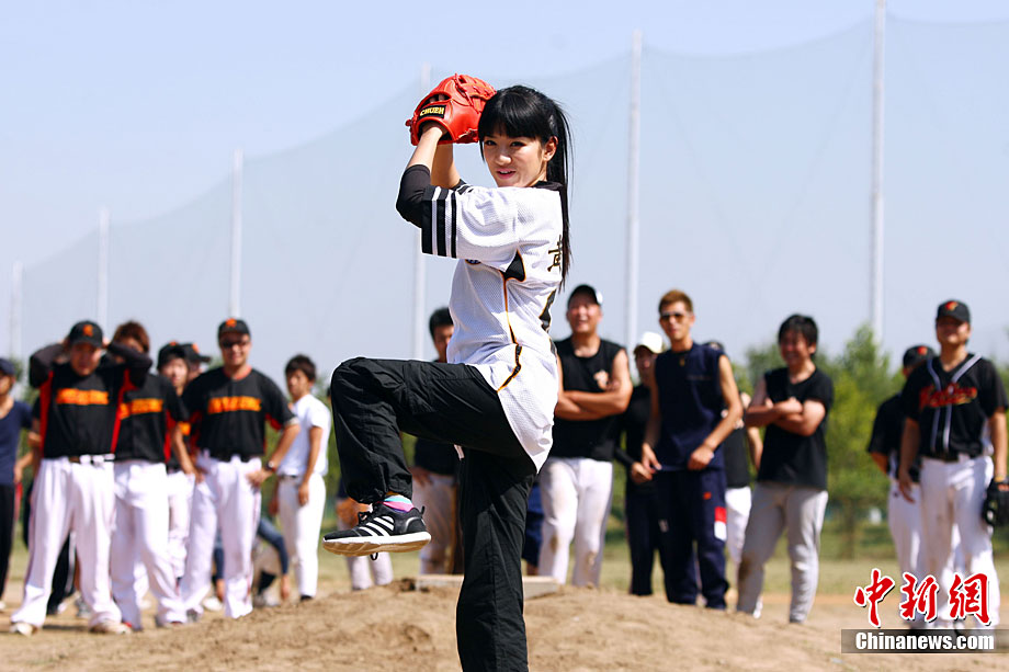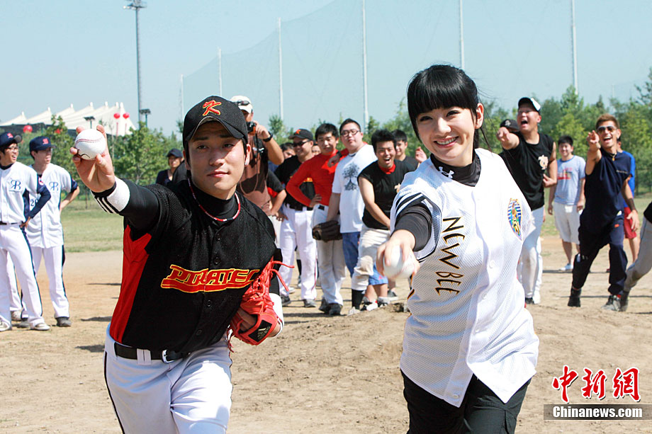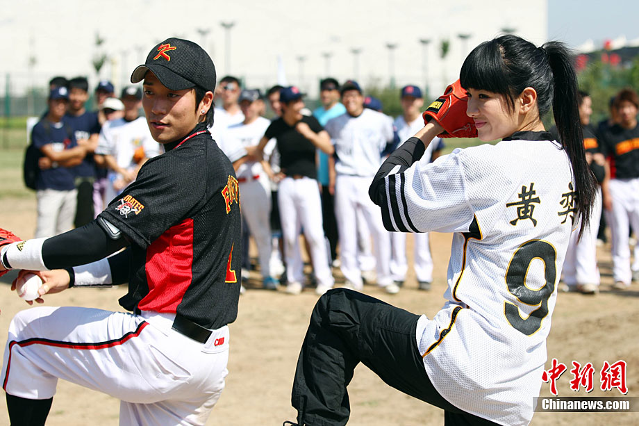9月12日,全民棒垒联盟PBSL秋季联赛在北京开幕。黄奕作为开球嘉宾出席。在中日韩精英队队员们的指导下,黄奕现场打起棒球有模有样。2010全民棒垒联盟PBSL得到了在京的广大中、日、韩、美等国棒垒球爱好者的踊跃支持,秋季联赛将有超过30支泛北京区域(北京、河北以及天津)球队参加。中新社记者 李学仕 摄