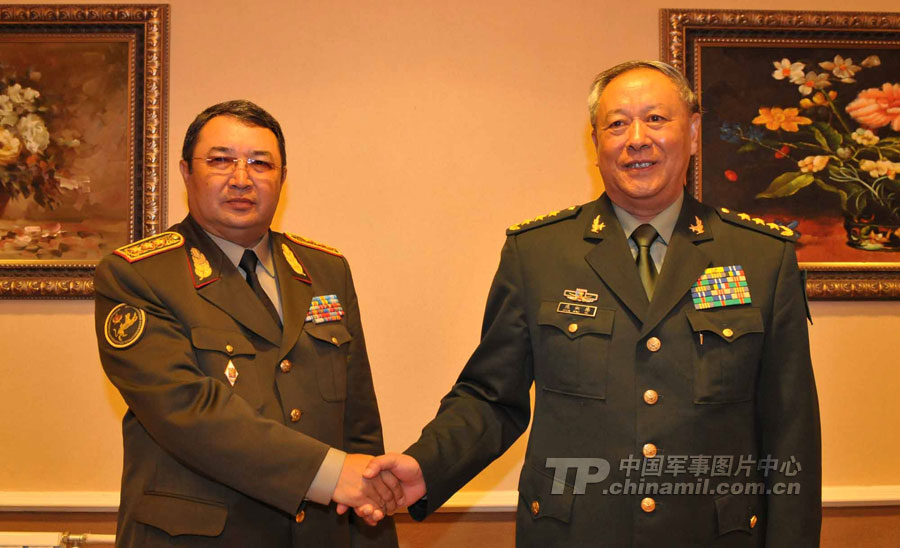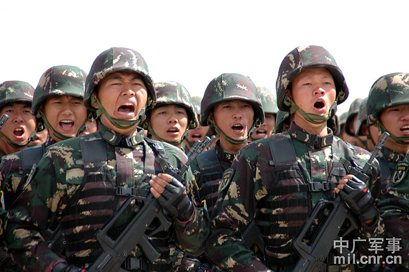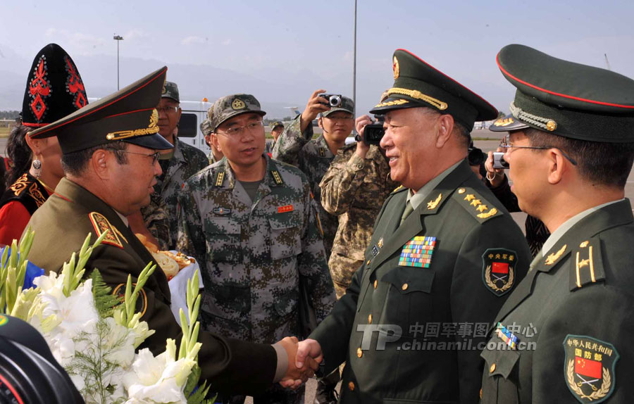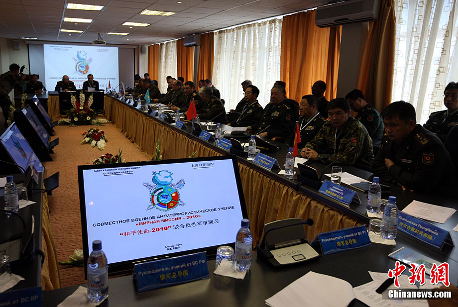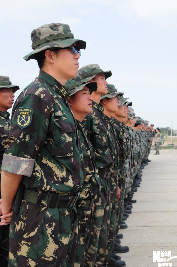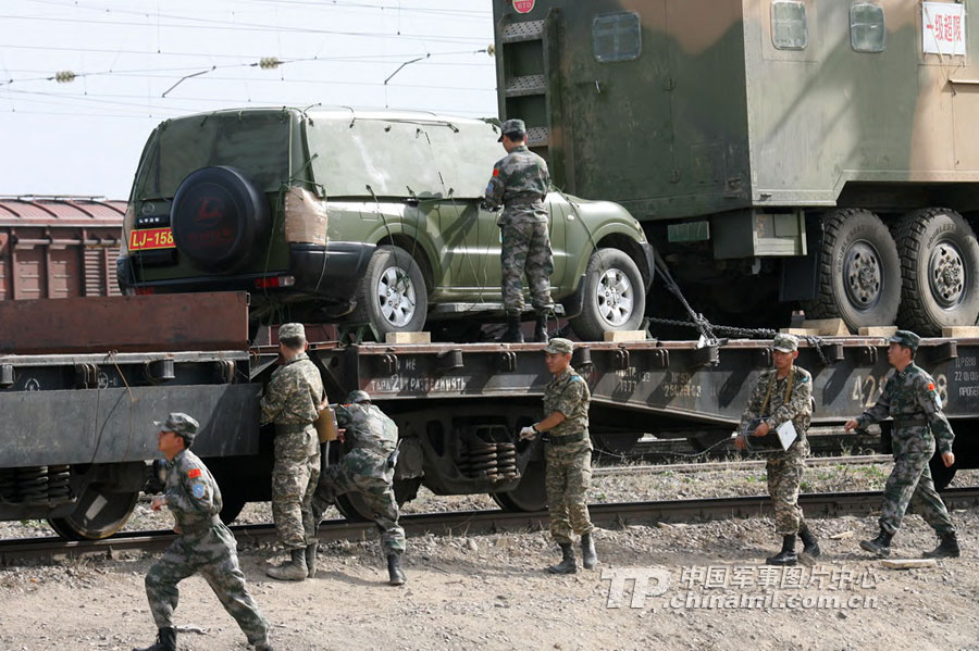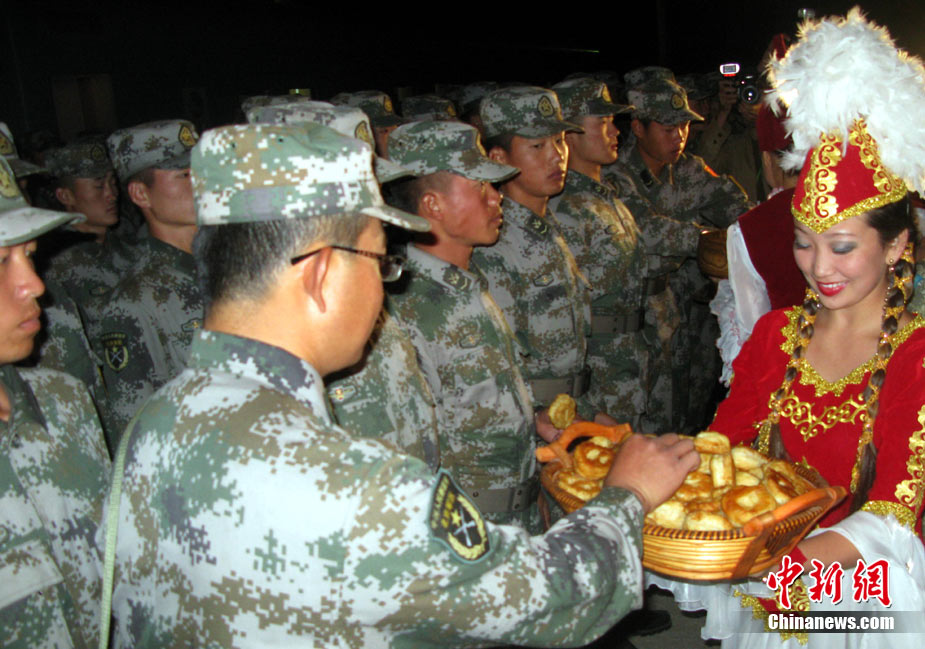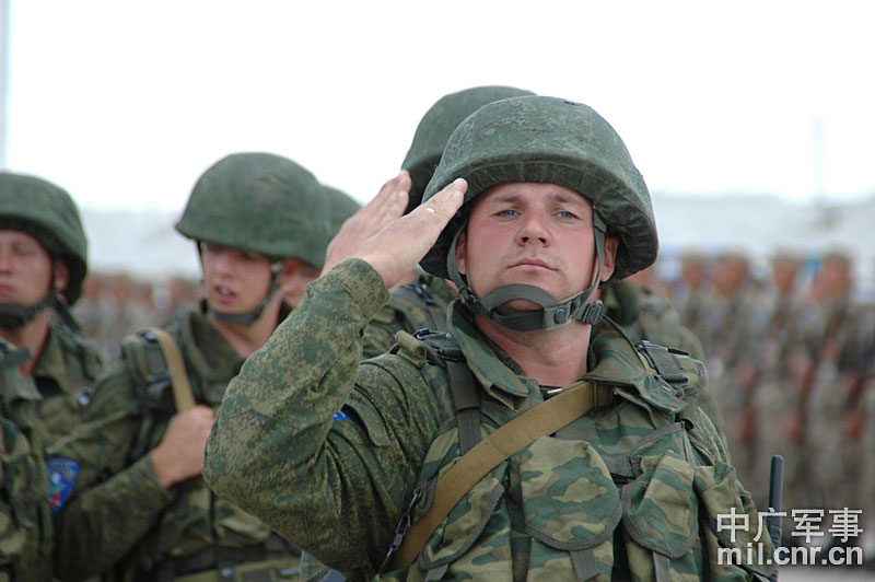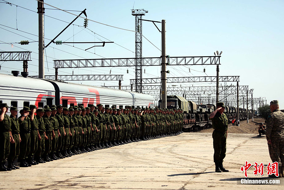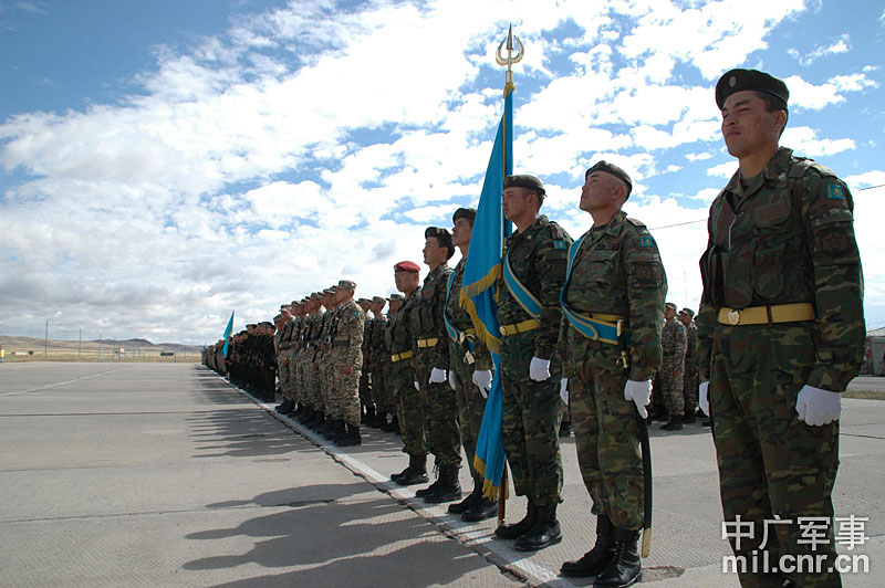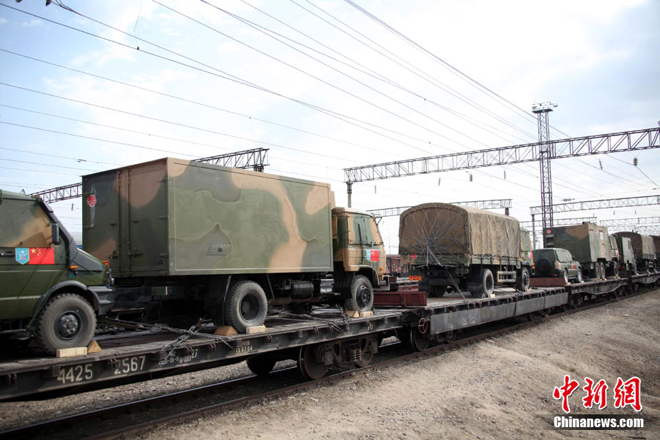 9月13日,“和平使命-2010”上海合作组织联合反恐军事演习在哈萨克斯坦马特布拉克训练场举行盛大的开训仪式,标志着这次联合军演由战役磋商阶段正式转入战役准备阶段。随后,哈、中、吉、俄、塔五方参演部队依次举行分列式,图为中方参演部队迈着矫健的步伐从开训仪式主席台前列队走过,接受检阅。中新社记者 孙自法 摄