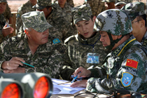 9月14日,“和平使命-2010”上海合作组织(上合组织)成员国武装力量联合反恐军事演习,按计划在哈萨克斯坦马特布拉克训练场进行联演战役准备阶段的首次合练。图为中方参演部队的坦克参加合练。中新社记者 孙自法 摄