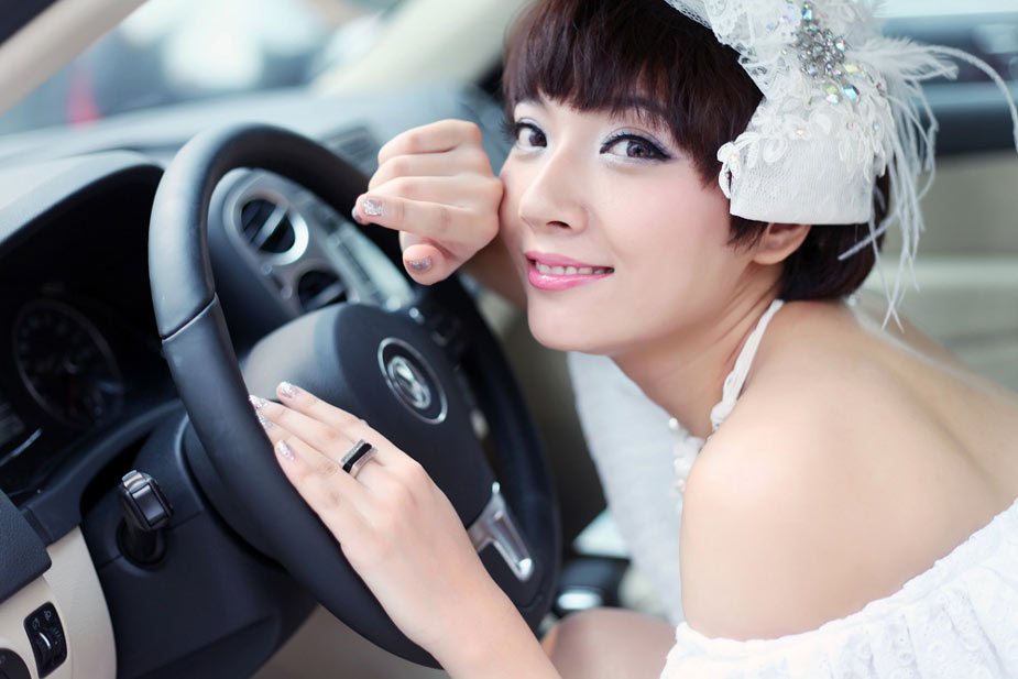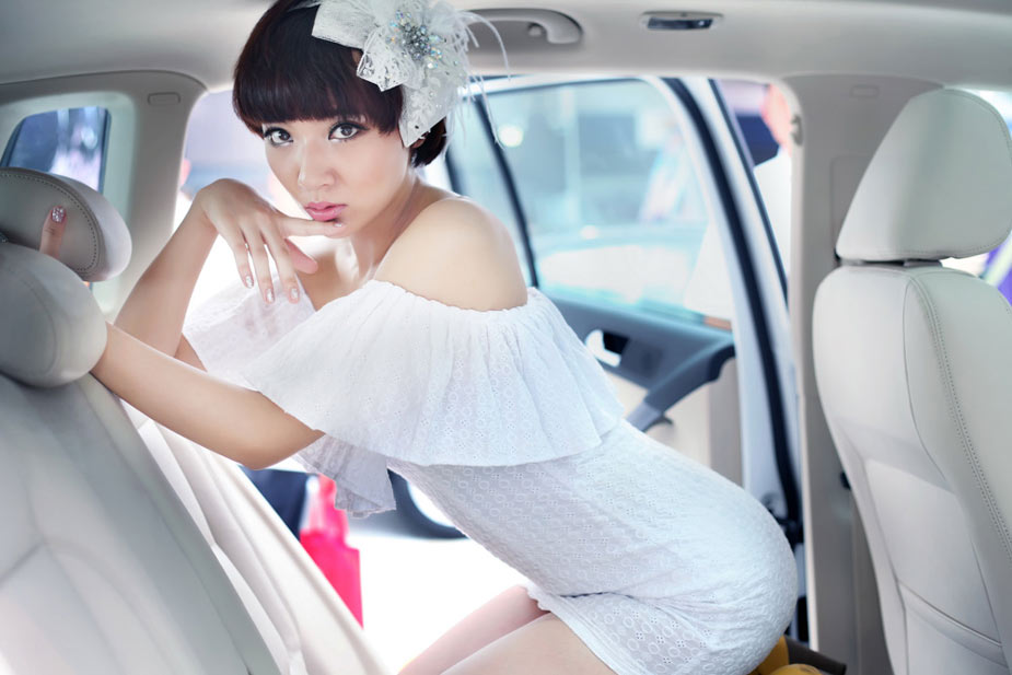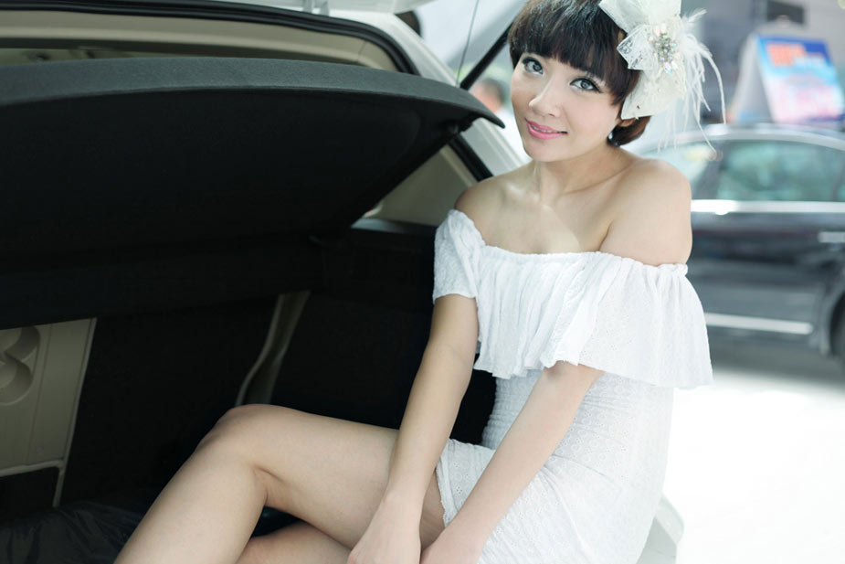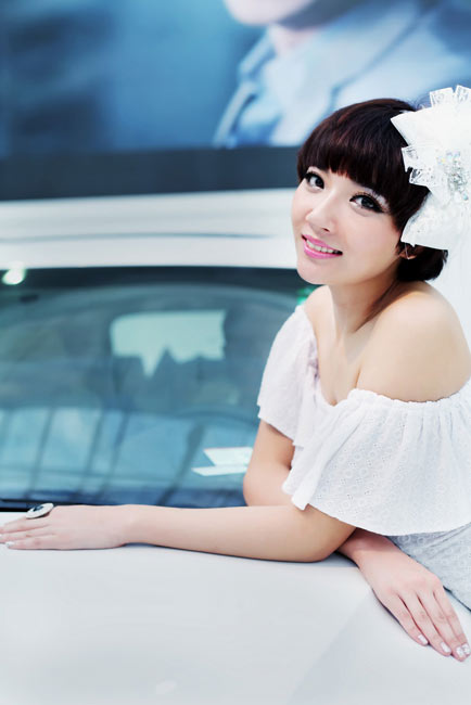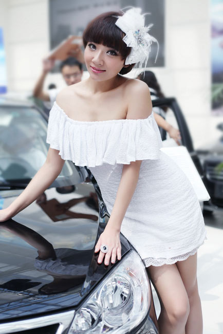 足球宝贝化身白衣车模尽显青春活力