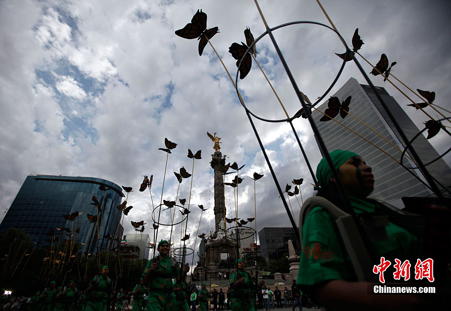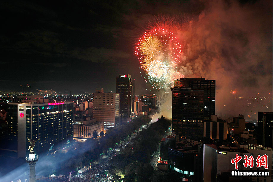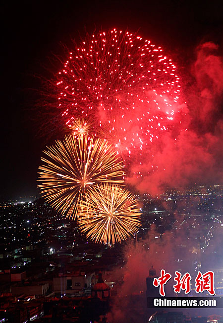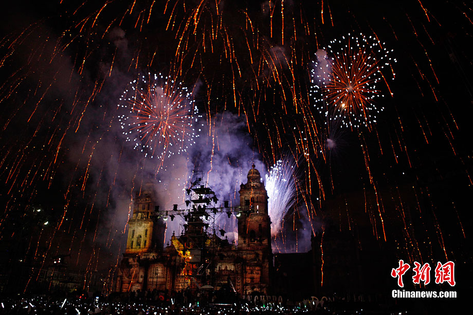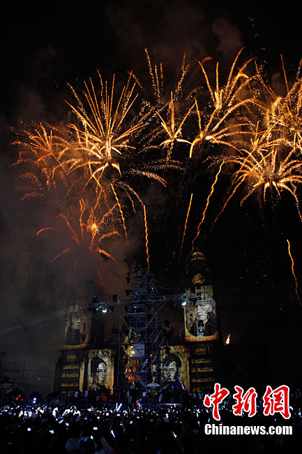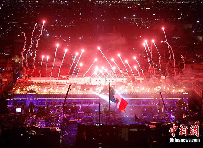 当地时间9月15日,墨西哥首都墨西哥城的广场上举行了纪念独立200周年庆祝活动开幕式表演。