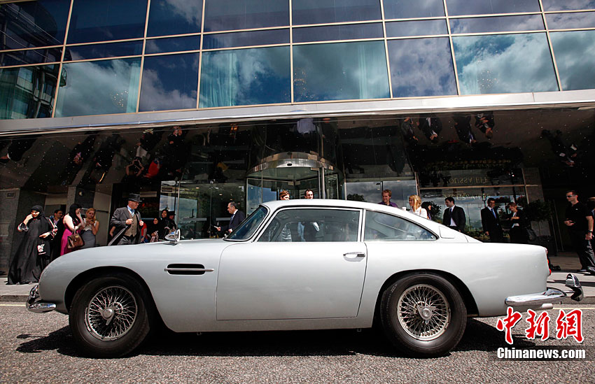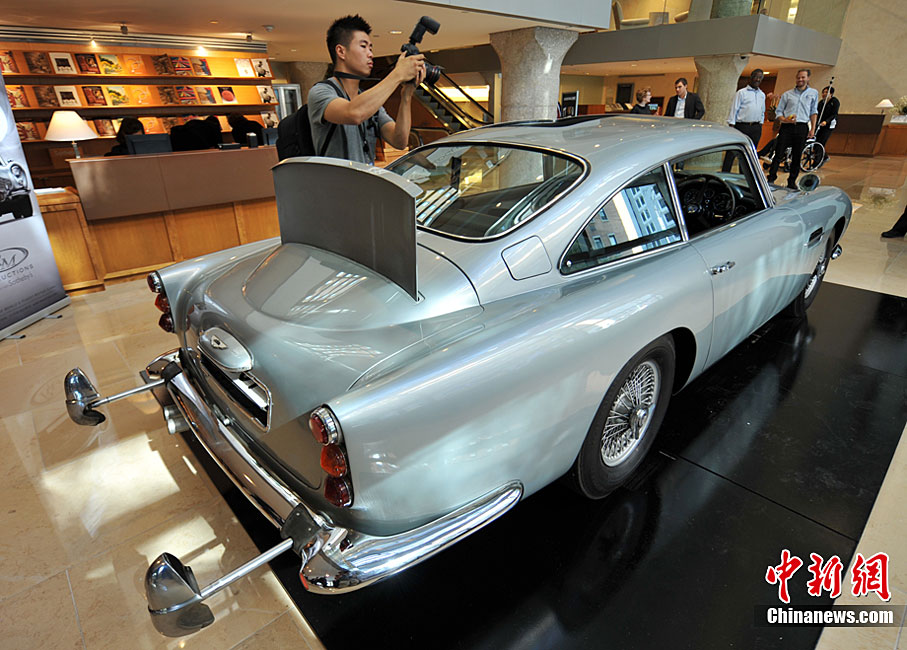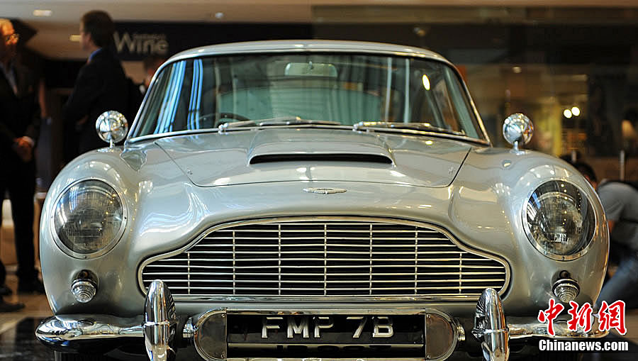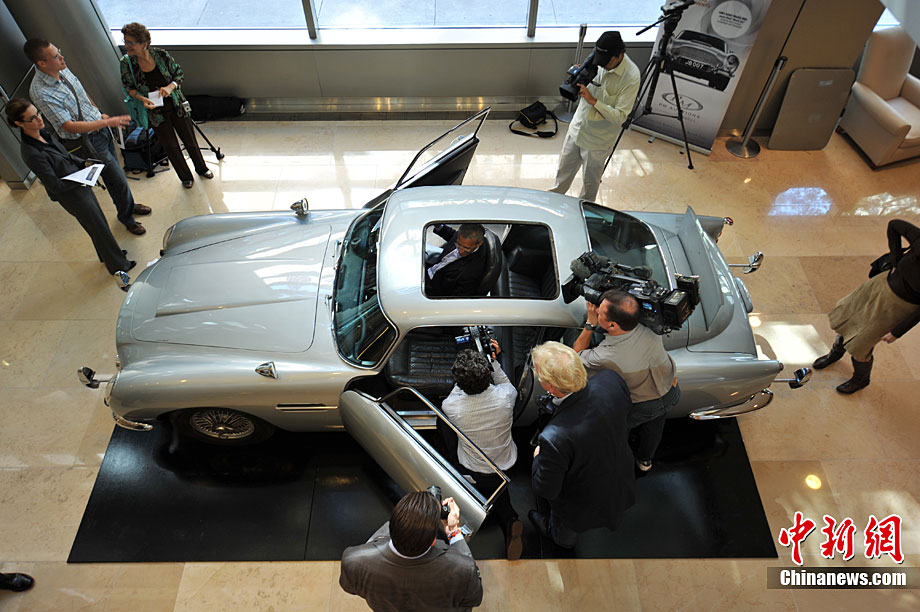 曾经在“007”系列电影《金手指》和《雷霆万钧》中作为主人公詹姆斯·邦德座驾的阿斯顿·马丁DB5跑车将于2010年10月27日在英国伦敦巴特西公园(Battersea Evolution)拍卖。图为这款轿车正在美国纽约苏富比拍卖行展出。