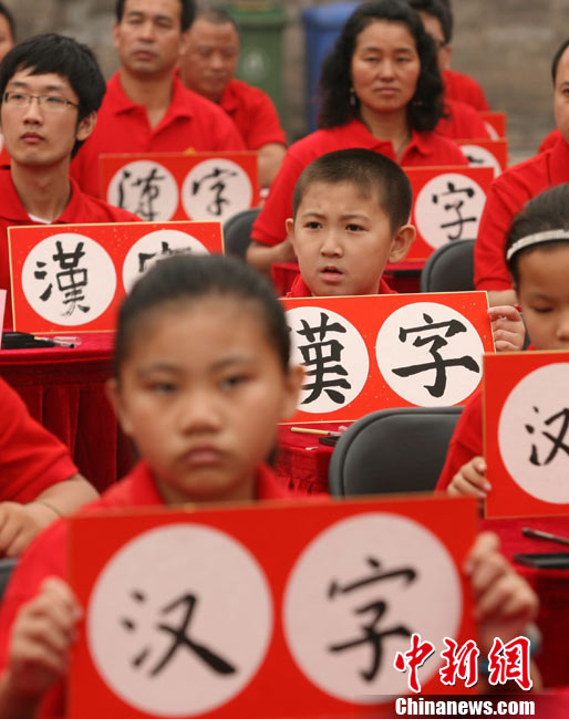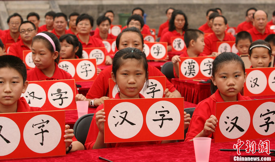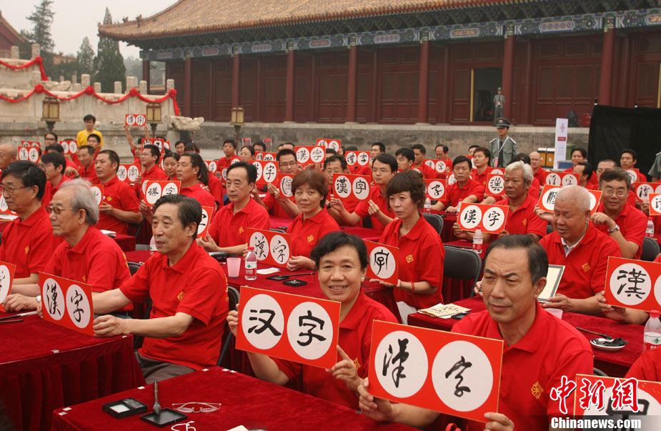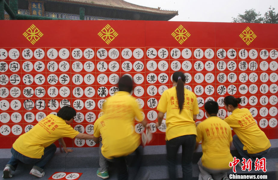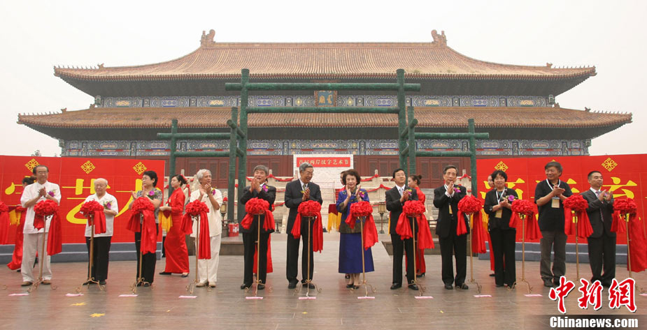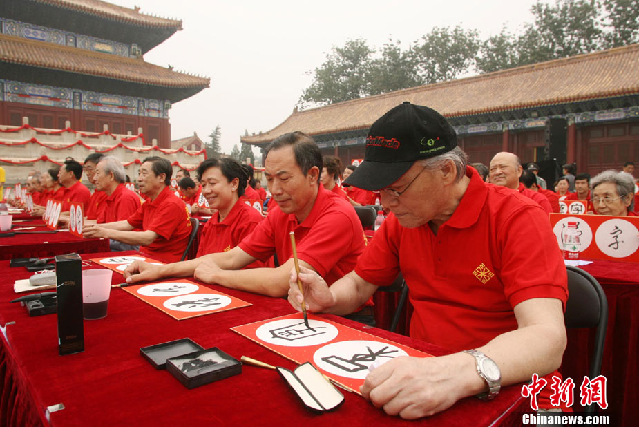 9月16日,北京两百名书法爱好者在太庙前书写各种字体的汉字,并共同完成“提笔、蘸墨、落笔、展卷”传统程序。当日,首届“两岸汉字艺术节”在北京太庙开幕。本次艺术节由中国艺术研究院、中华文化联谊会、台湾文化总会、河南省安阳市政府联合主办,中国艺术研究推广中心、台湾中华新文化发展协会共同承办。中新社发 苏丹 摄