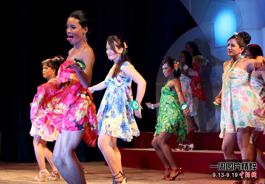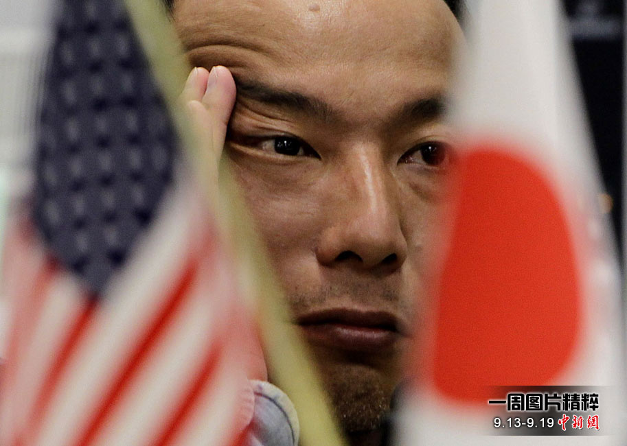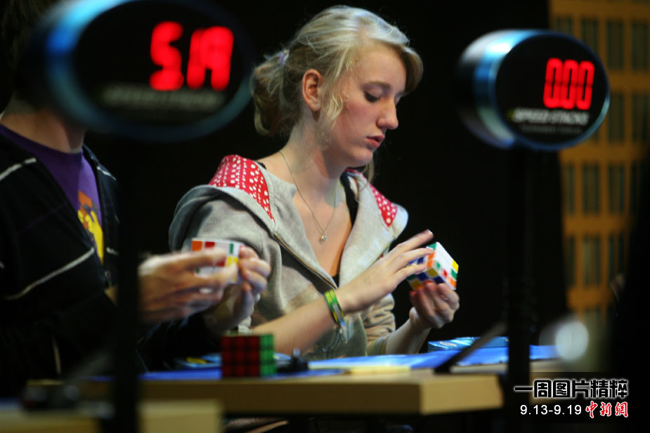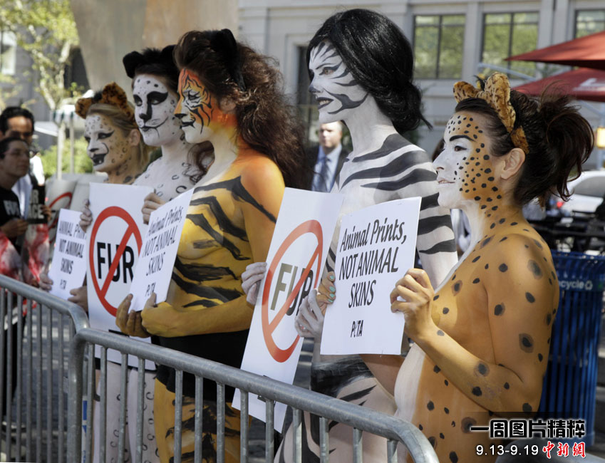 9月13日(周一), 纽约时装周上,一名模特正在化妆。9日-16日,2011纽约春夏时装周举行。