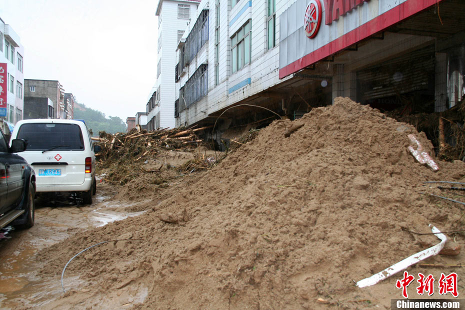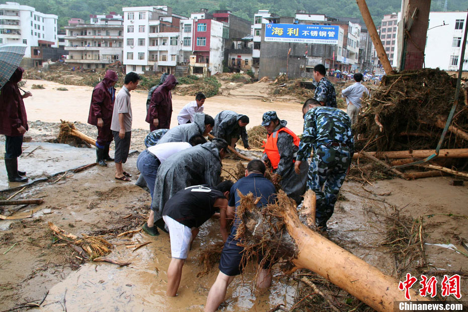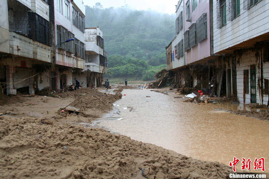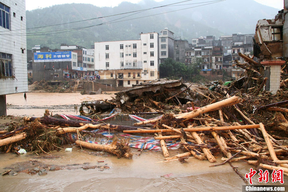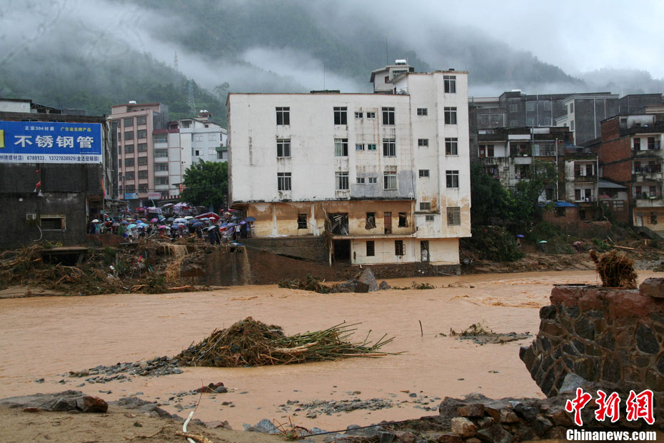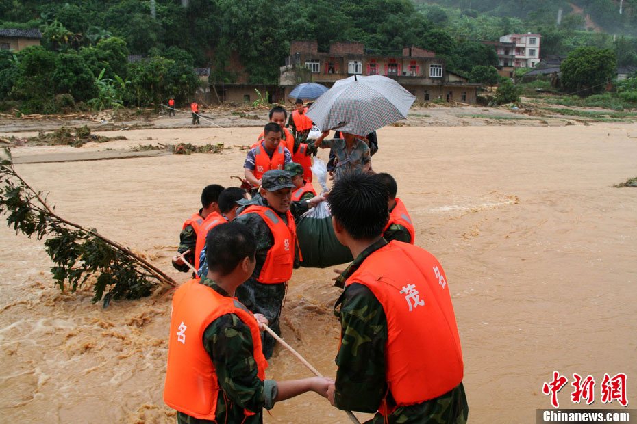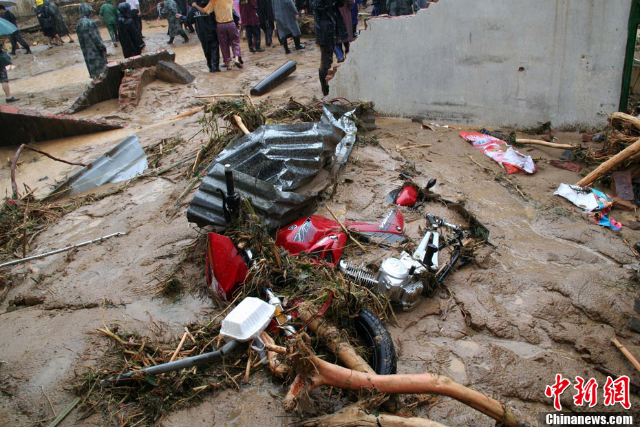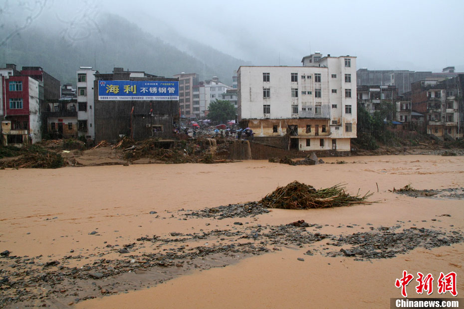 9月23日晚,广东茂名市三防部门称,受“9·21”特大暴雨引发山洪灾害影响,当地因灾停产工矿企业达176家,其中以水电站为主,还包括木业加工厂、选矿厂等。图为灾害现场。中新社记者 梁盛 摄
