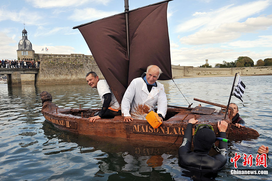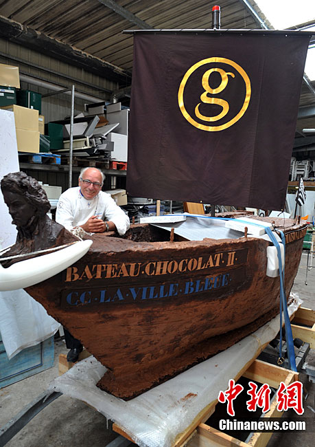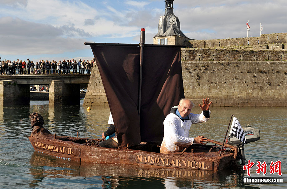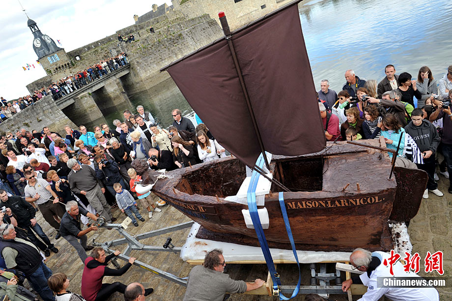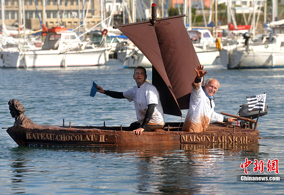 当地时间9月25日,一艘用巧克力和冰糖制造的帆船在法国西北菲尼斯泰尔省的孔卡诺港下海试水,吸引不少居民和游客观看。这艘巧克力帆船长3.5米、重1.2吨,由法国名匠设计。帆船的龙骨全部使用冰糖搭建,除风帆和发动机外,其他部分则使用巧克力做材料。当天,这只巧克力帆船载着制造者和一名乘客成功驶离孔卡诺港,在海上巡航数圈后安全返回,现场观众彩声一片。