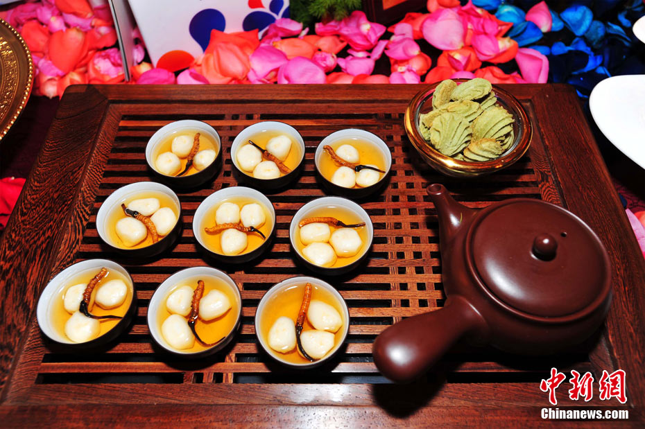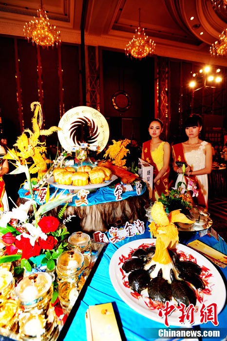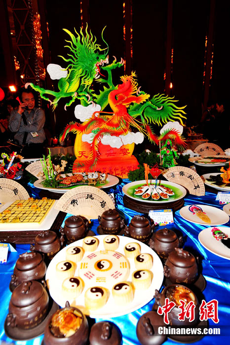 26日下午,第七届中国国际美食旅游节在成都世纪城娇子国际会议中心开幕。成都荣获“世界美食之都”后的首道创意大餐在美食旅游节上正式亮相,“成都盛宴”荟萃了60桌主题宴席和经典菜品,共计约1000款菜品,分川菜精品展示区、外国菜精品展示区、八大菜系精品展示区、品牌火锅展示区、区(市)县特色展示区。 安源 摄