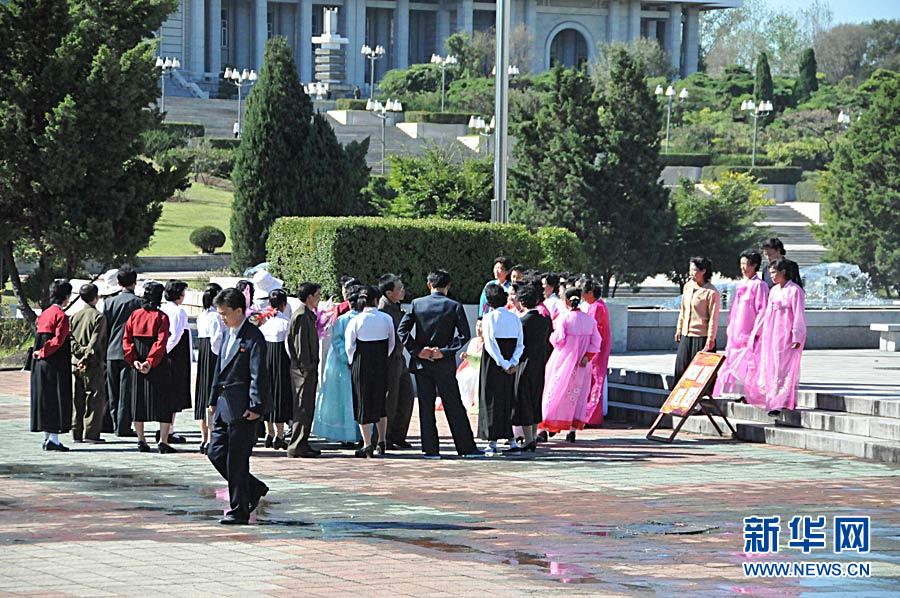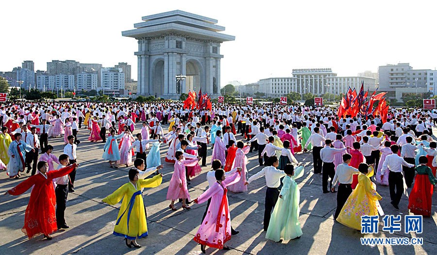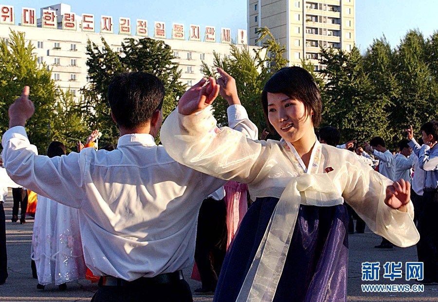 9月28日,朝鲜青年学生在首都平壤举行舞蹈集会,庆祝朝鲜劳动党代表会议当天推举金正日为朝鲜劳动党总书记。图片来源:新华网