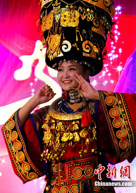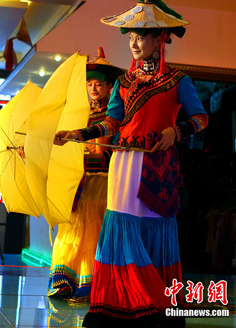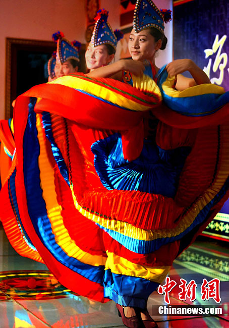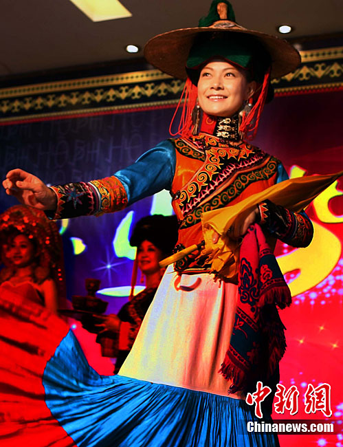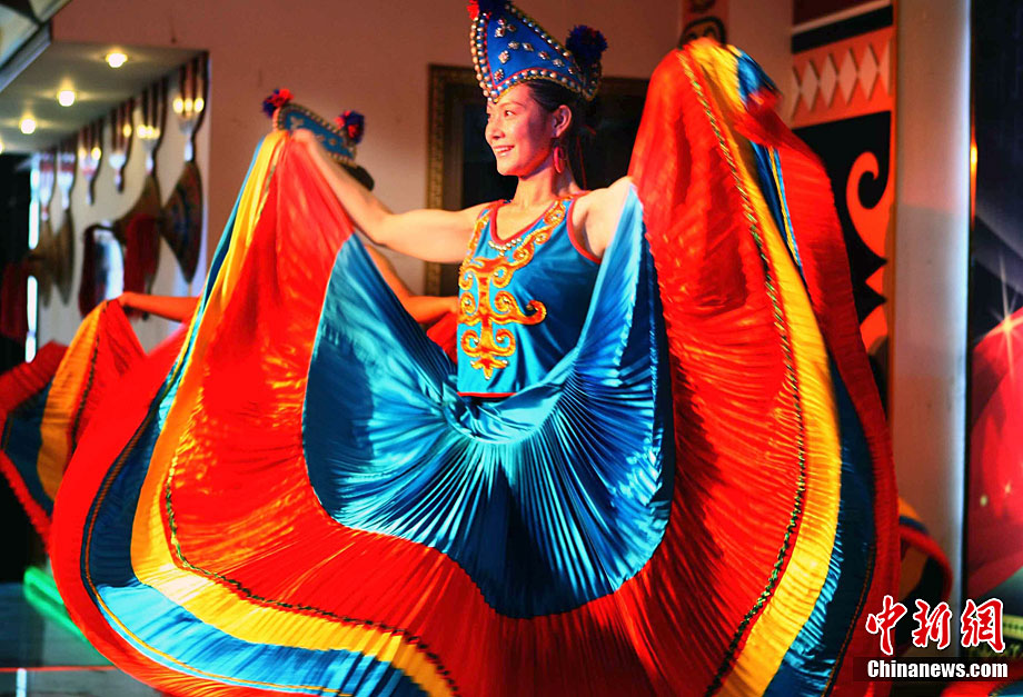 西昌市一家彝族特色餐馆,9月29日表演民族舞蹈、展示民族服饰,表达民族情怀,祝福中国第二颗绕月探测卫星——“嫦娥二号”圆满升空。据悉,“嫦娥二号”任务拟定于9月30日开始加注火箭推进剂,10月1日至3日择机实施卫星发射。中新社记者 宋吉河 摄