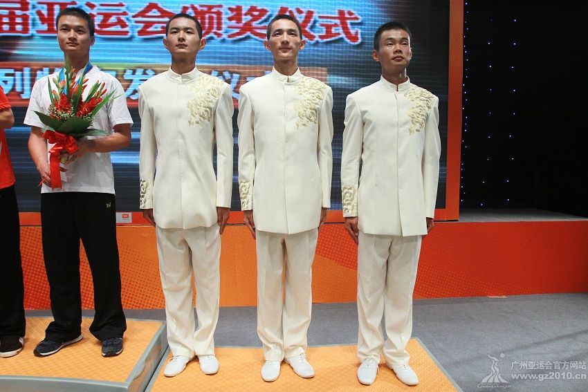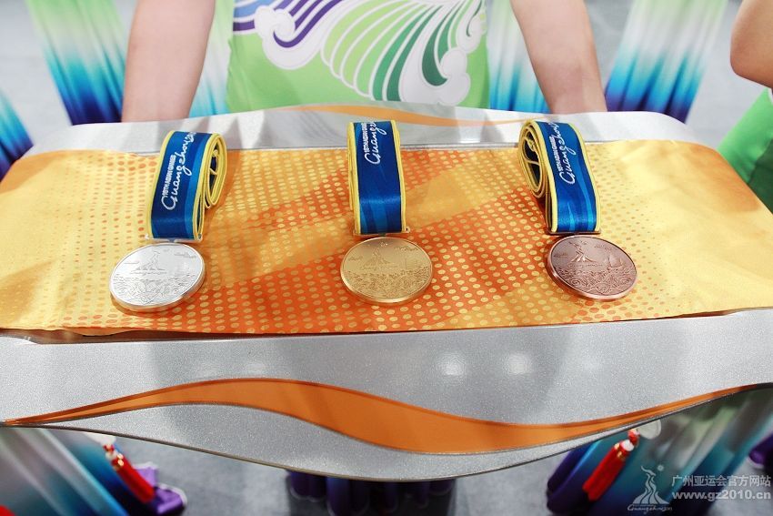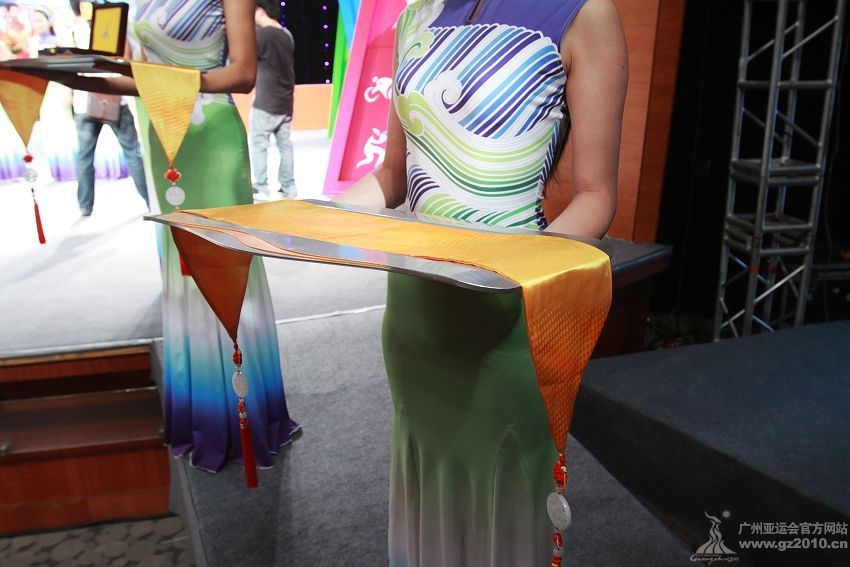 9月29日下午,第16届亚运会颁奖仪式系列物资发布仪式在广州市二少年宫举行。图为颁奖礼仪。图片来源:广州亚运会官网