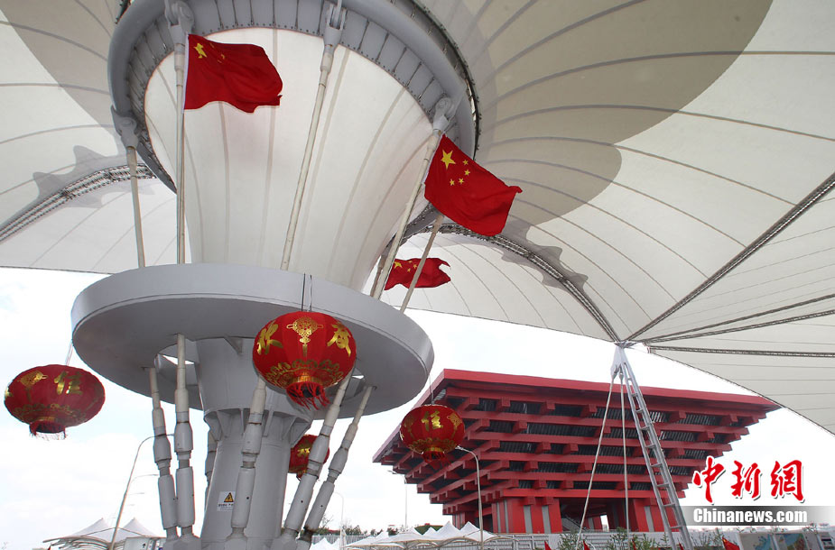 9月30日,上海市晴空万里白云朵朵,上海世博会中国国家馆日活动将于10月1日举行。中新社记者 任晨鸣 摄