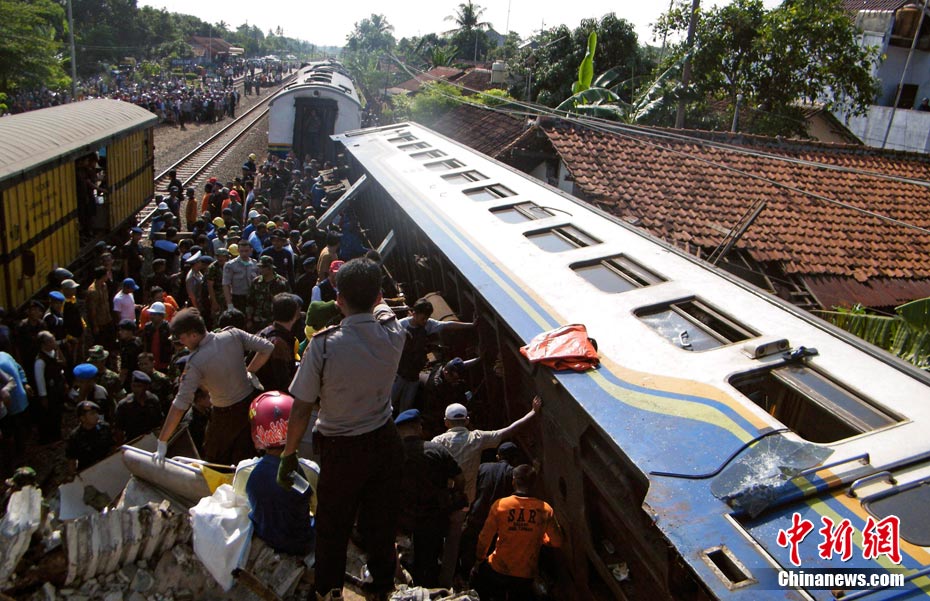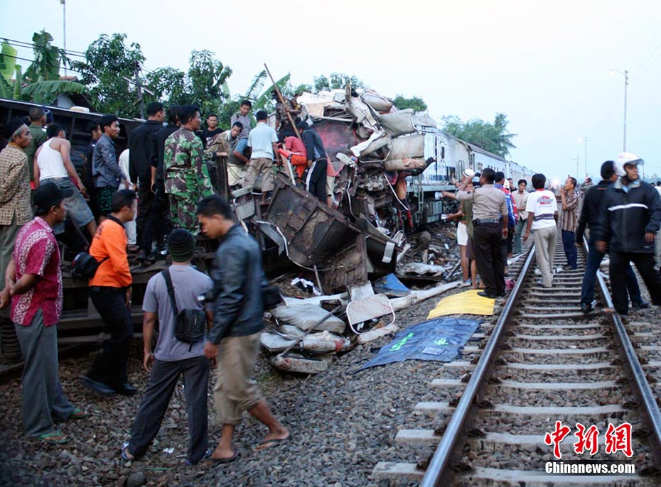 印尼中爪哇省2号发生火车相撞事故,至少已造成33人死亡。 事发在中爪哇北岸的珀塔鲁坎,一列行驶中的列车,于凌晨约3点钟,撞向一列停在车站内的列车,当时大部分人都在睡眠中,因此事故造成严重伤亡。