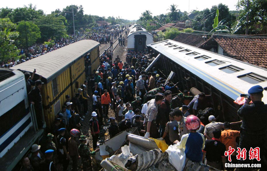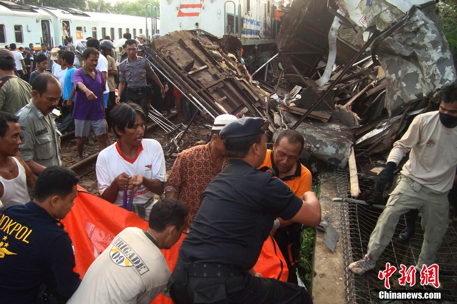 印尼发生火车相撞事故造成严重伤亡