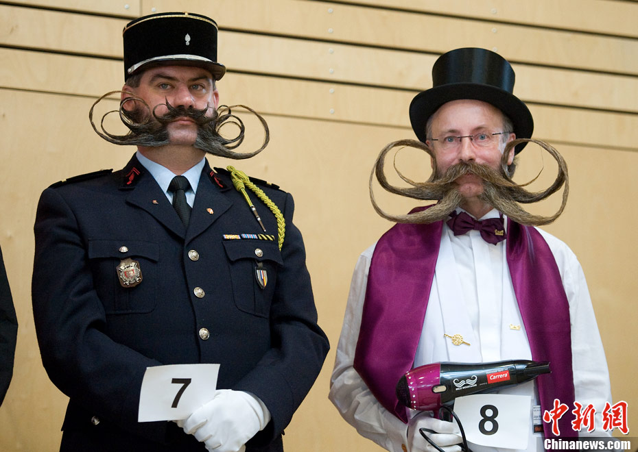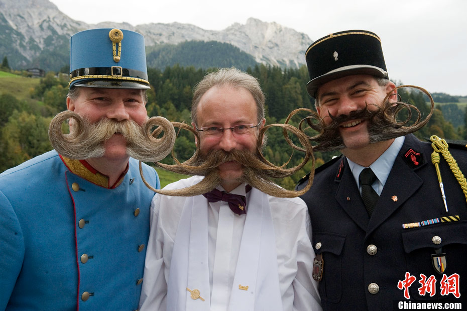 当地时间10月2日,“2010欧洲胡须锦标赛”在奥地利举办,选手们“带着”精心修整的美鬓参加大赛。