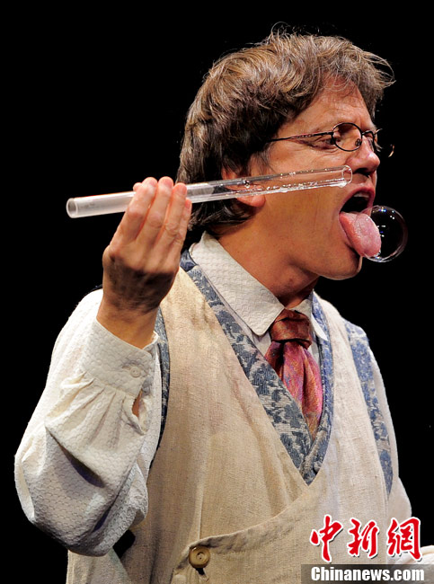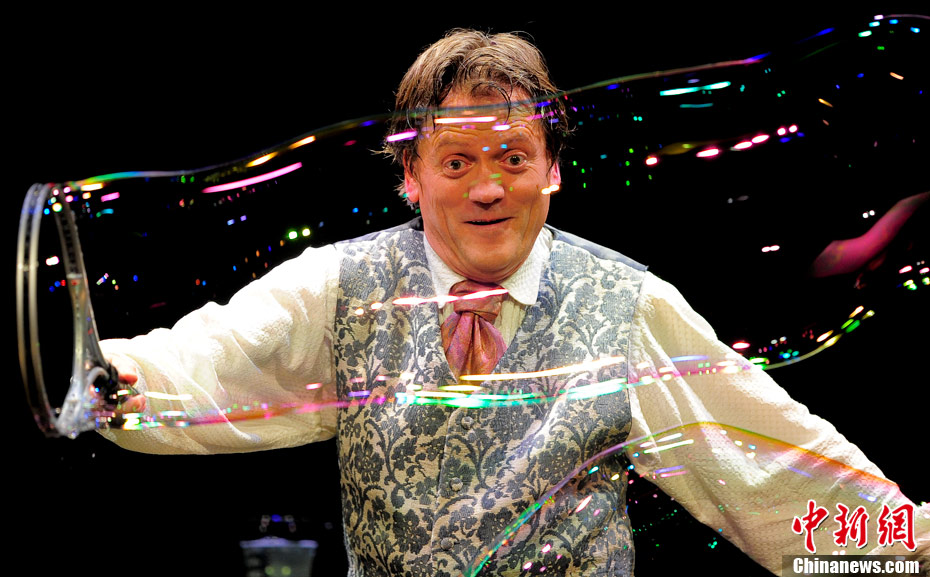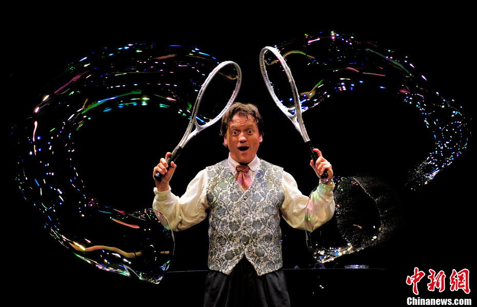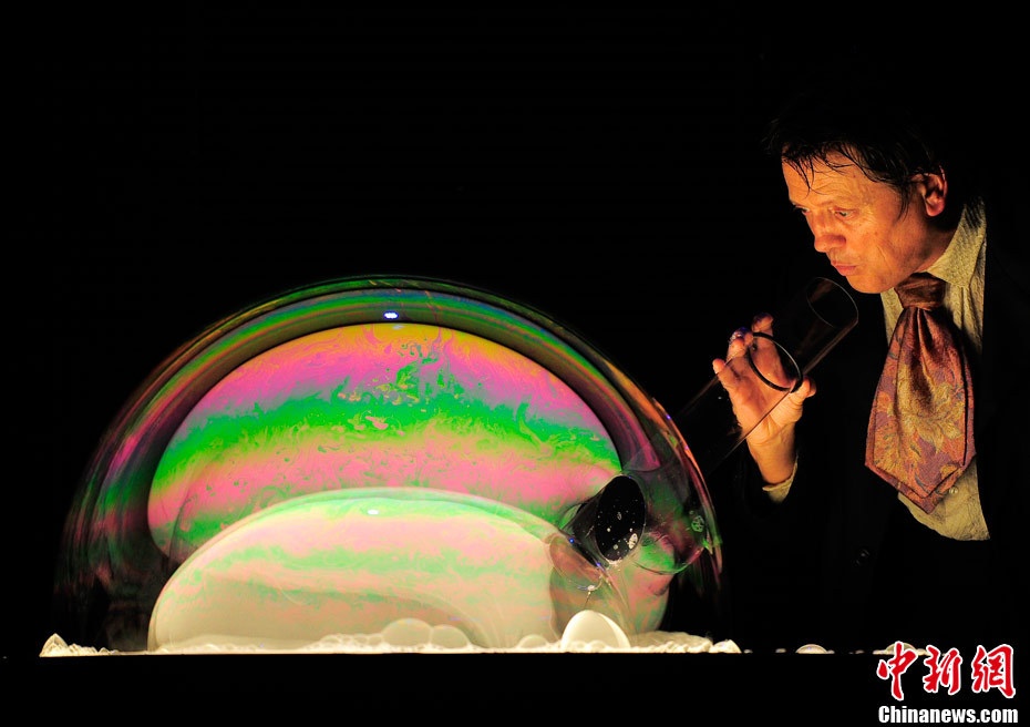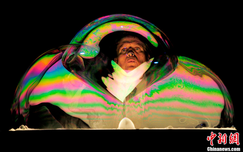 当地时间10月2日,西班牙肥皂泡魔术师佩普-布奥表演他的拿手好戏“泡泡秀”。