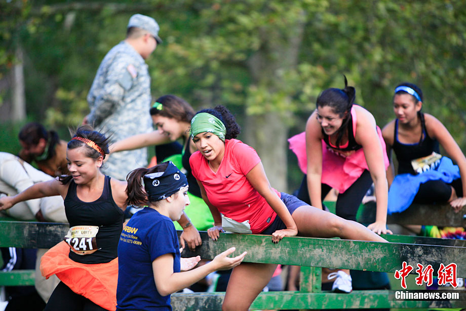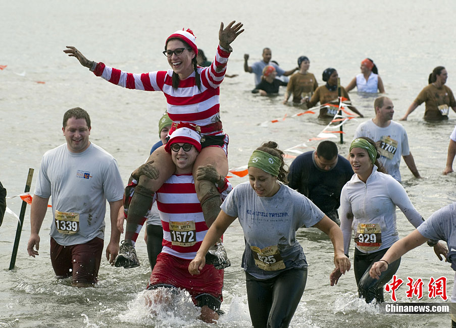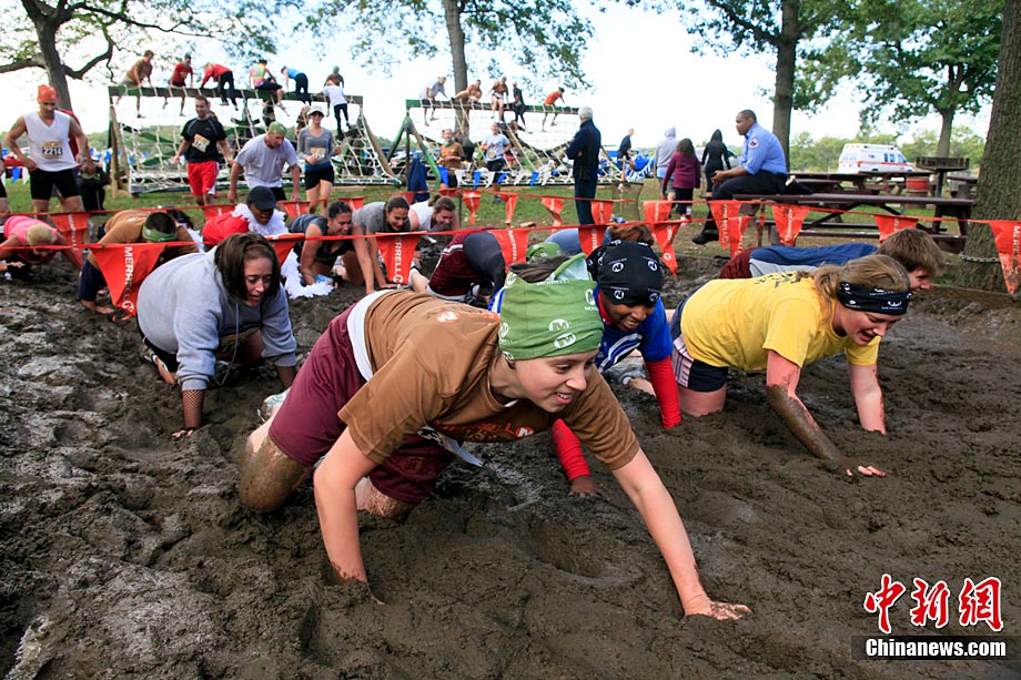 当地时间10月3日,数千名跑步爱好者参加了在美国纽约梅里尔岛举行的泥地跑步大赛。参赛者要在长达一英里的路程中趟过泥地、穿过海滩和各种障碍抵达终点。