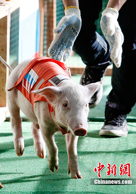 俄罗斯举行猪仔赛跑