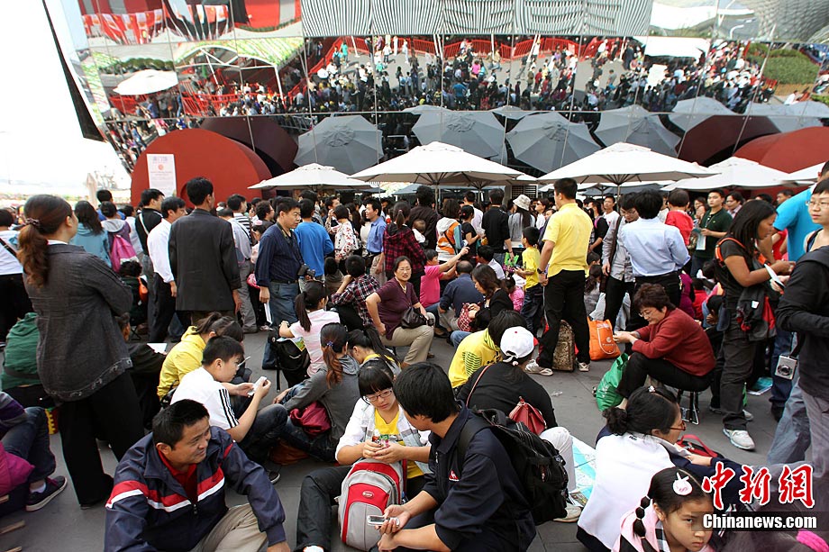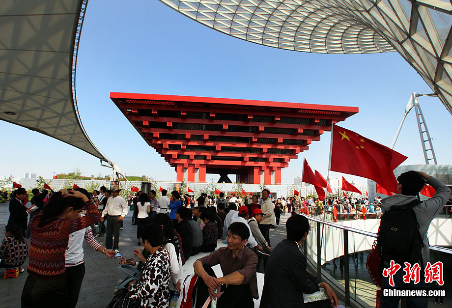 10月4日,上海风和日丽,世博会入园人数持续上升。黄金周前三天,上海累计接待观光游客407万人次,几乎相当于往年整个黄金周的接待量。目前,上海世博园区连续三天已接待游客超过100万人。中新社记者 任晨鸣 摄