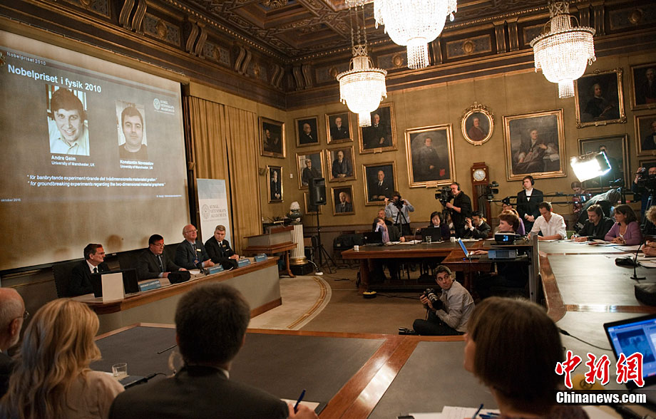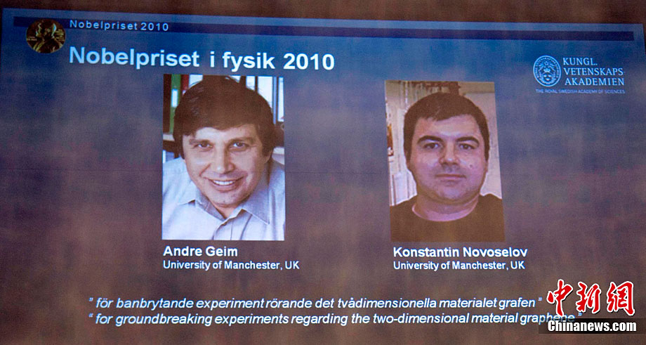 瑞典皇家科学院当地时间10月5日宣布,将2010年诺贝尔物理学奖授予英国曼彻斯特大学科学家安德烈·海姆和康斯坦丁·诺沃肖洛夫,以表彰他们在石墨烯材料方面的卓越研究。图为康斯坦丁·诺沃肖洛夫。