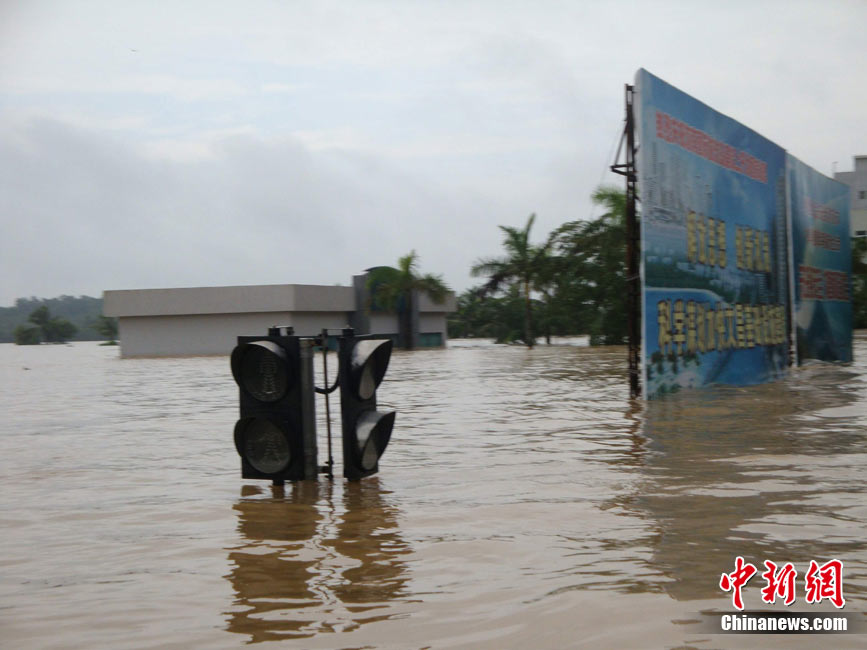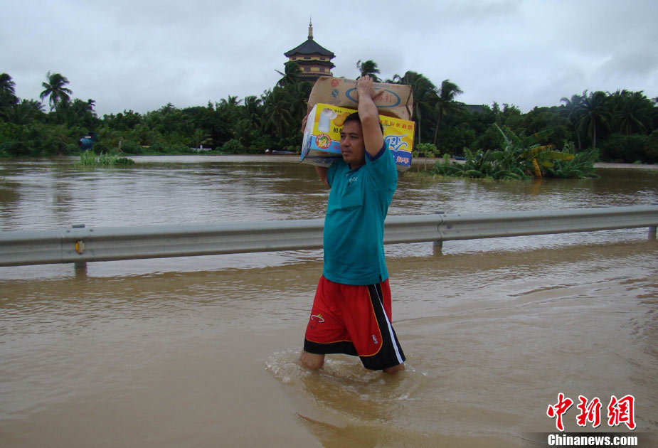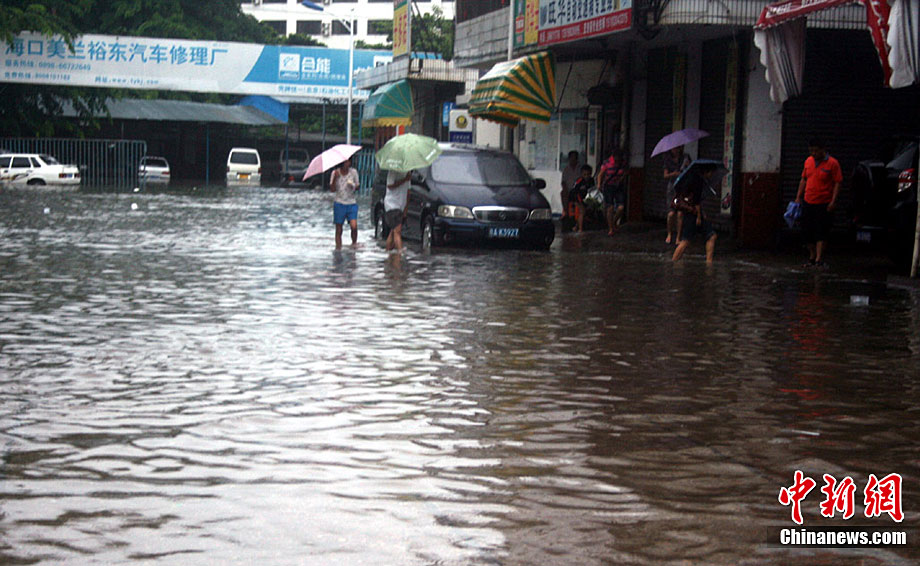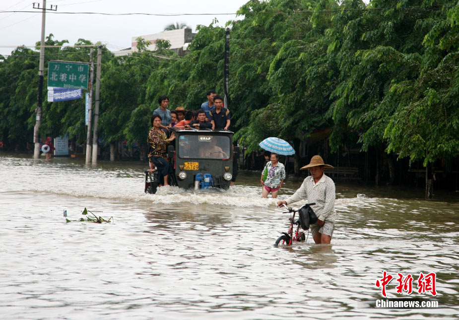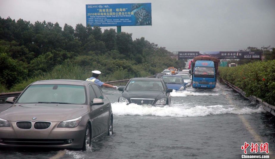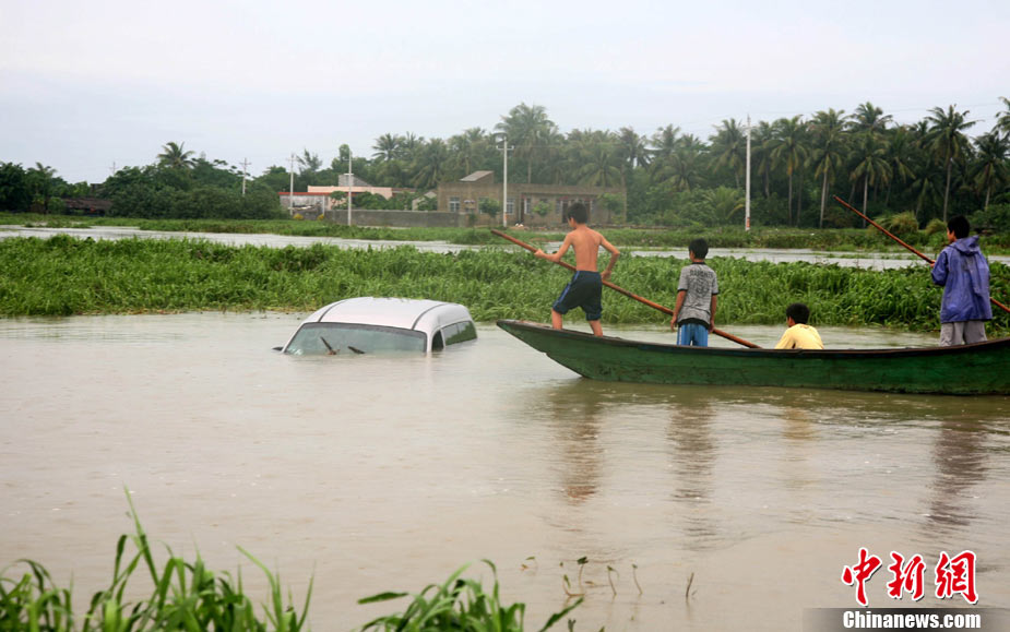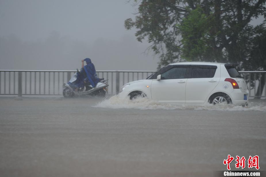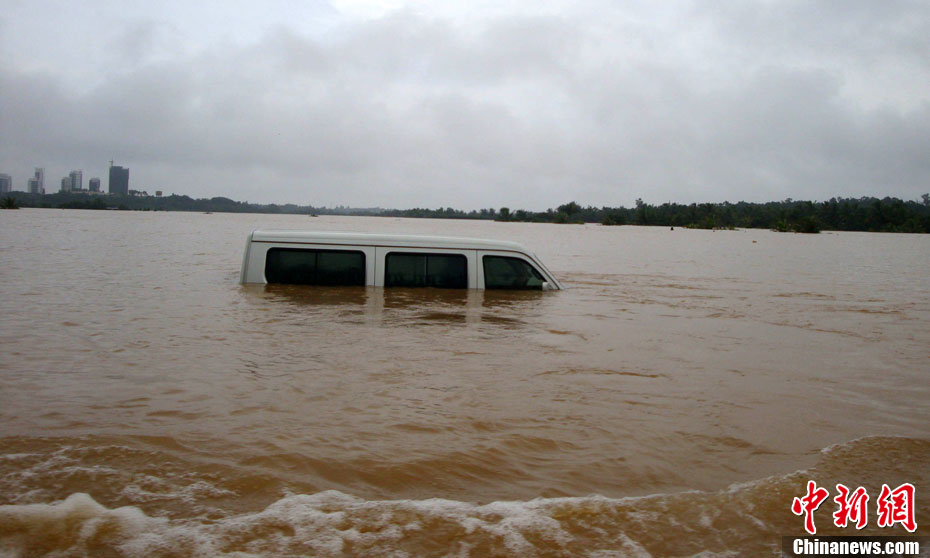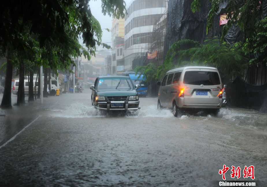 10月6日消息,海南从9月30日开始的强降雨仍在持续。海南省气象台再次将暴雨二级应急响应提升为一级,提请各沿海港口迅速做好渔船回港避风工作。图为汽车在海南琼海市涉水路段经过。 中新社发 蒙钟德 摄 图片来源:cnsphoto