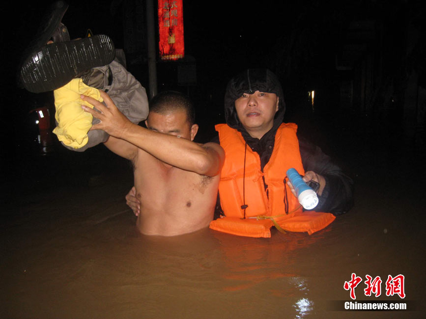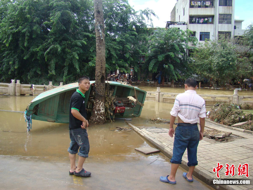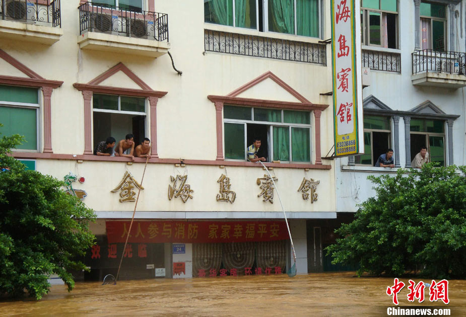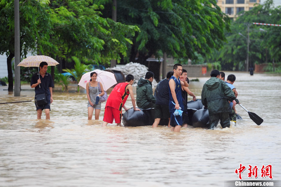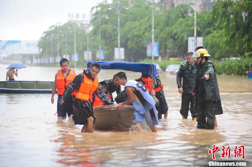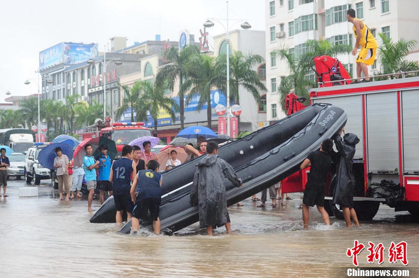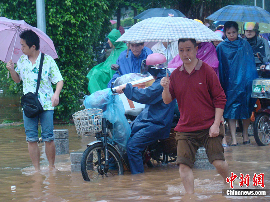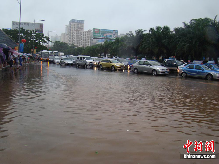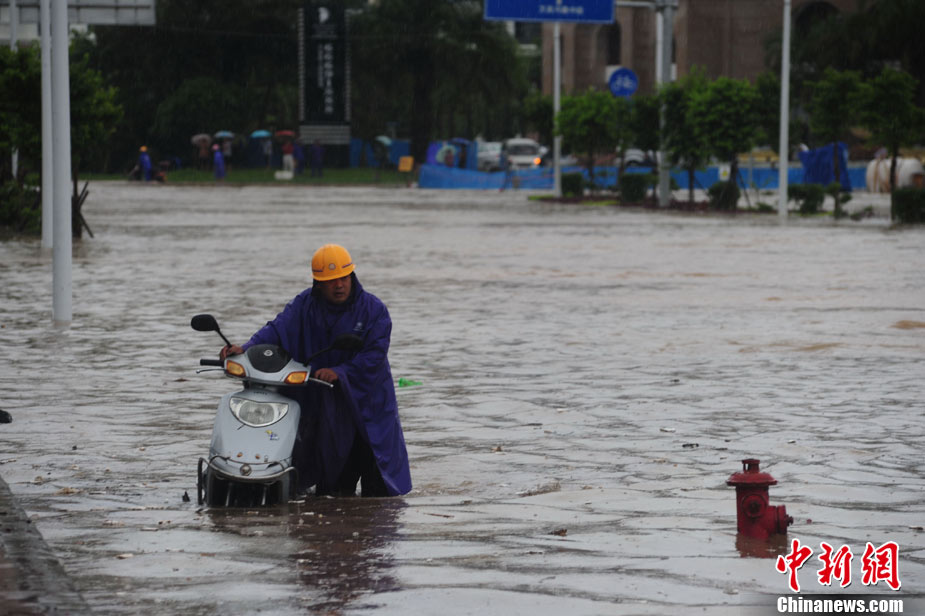10月6日消息,海南从9月30日开始的强降雨仍在持续。海南省气象台再次将暴雨二级应急响应提升为一级,提请各沿海港口迅速做好渔船回港避风工作。图为汽车在海南琼海市涉水路段经过。 中新社发 蒙钟德 摄 图片来源:cnsphoto
