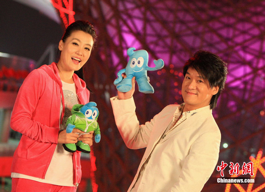 10月7日晚,著名歌手谭晶、周华健在上海世博园区携手开拍世博闭幕歌曲《难说再见》MV。由王平久作词、金培达作曲的《难说再见》创作于北京奥运会闭幕之时,如今这首由奥运走到世博的歌曲再度唱响,代表了所有中国人对世博的依恋,也代表了世博会志愿者对世博的难舍情感。中新社记者 潘索菲 摄