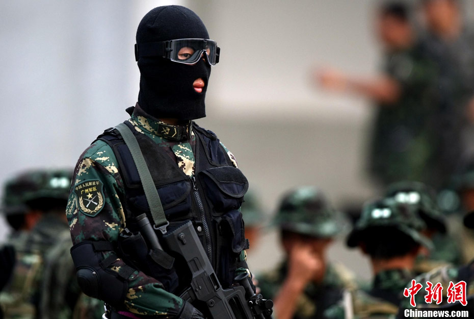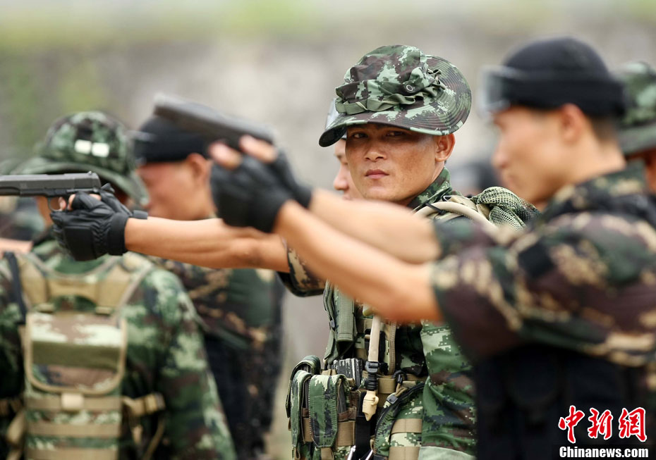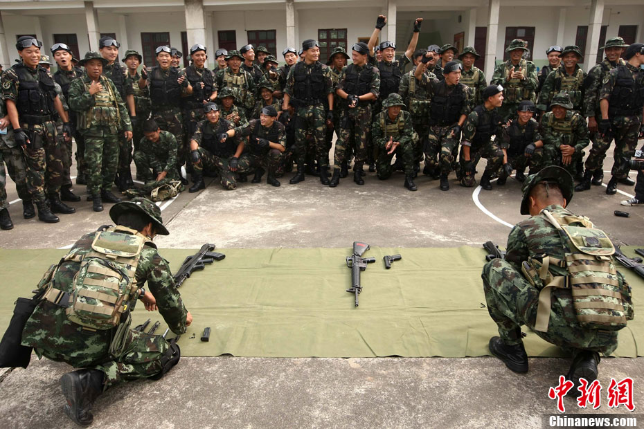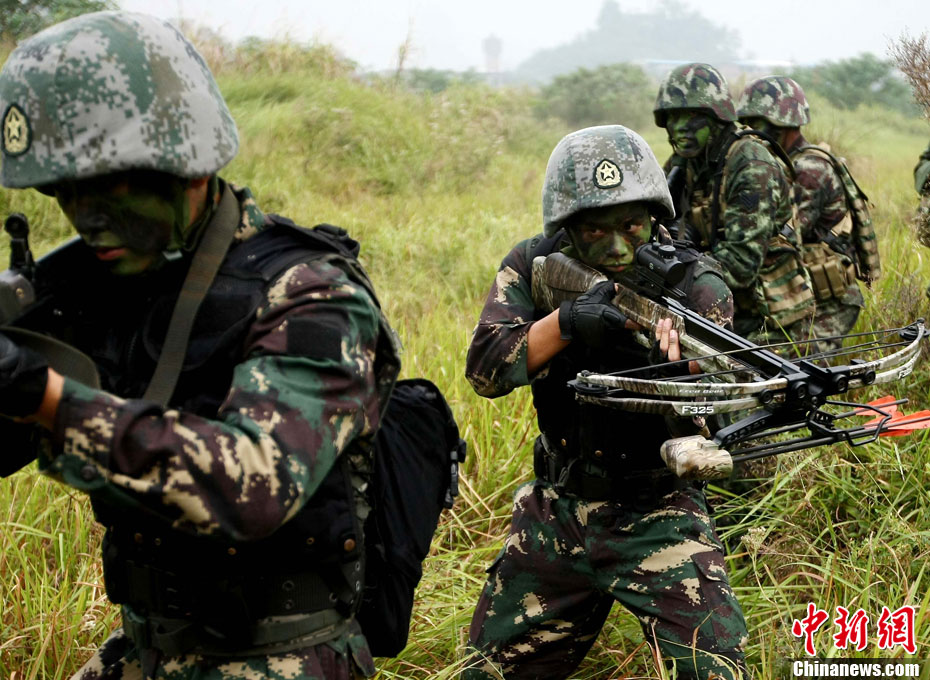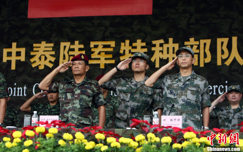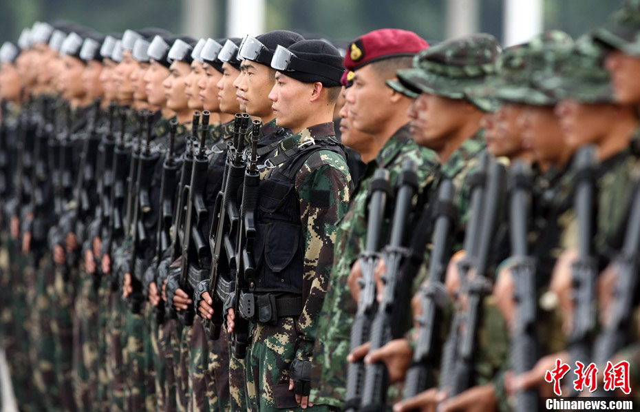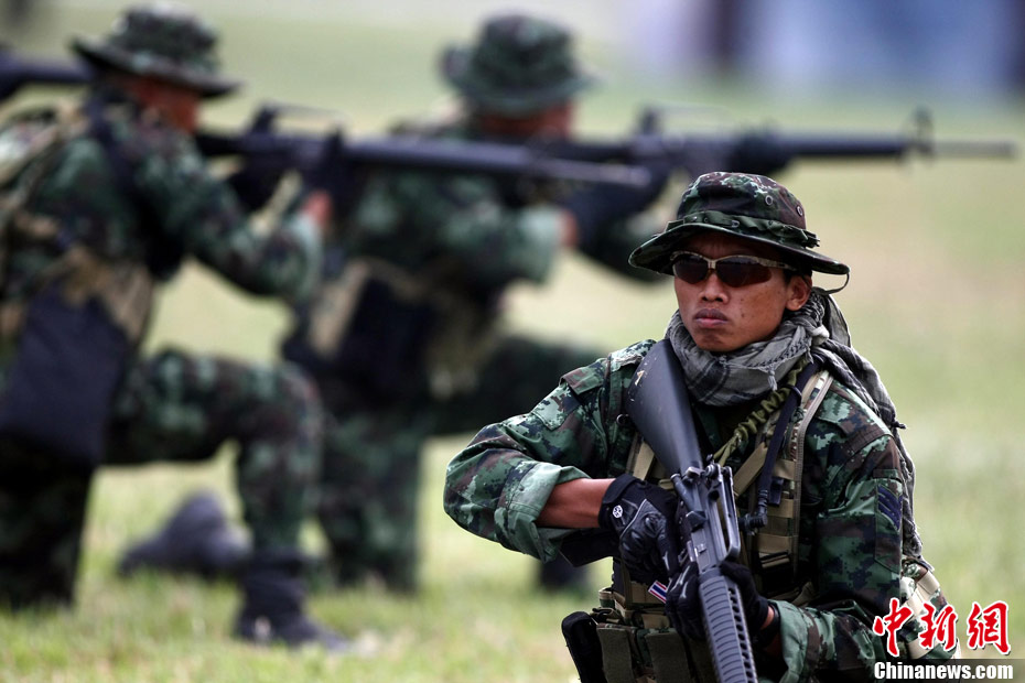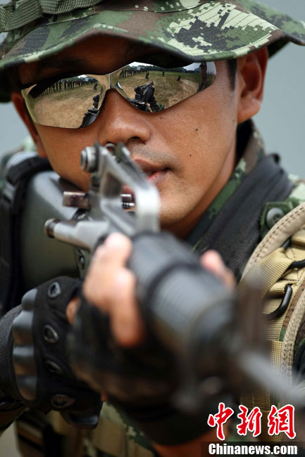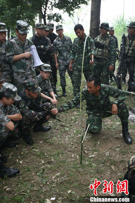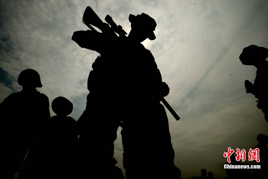 10月8日,中国、泰国两军特种部队“突击—2010”反恐联合训练在广西桂林拉开帷幕,这是两国之间举行的第三次陆军联合训练。分析人士指出,这次联训将进一步巩固两军关系,提高联合反恐作战能力,利于维护地区和平稳定。此次联训为期15天,这是中泰两国陆军首次就城市反恐课题开展联训。图为中国参训部队在开幕式上表演房屋突击。中新社记者 杜洋 摄