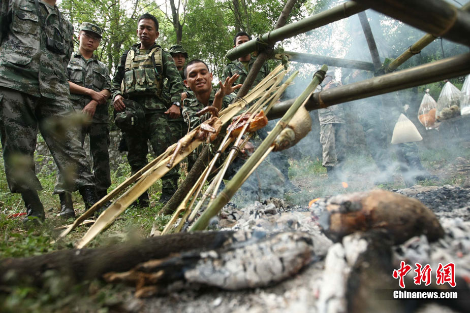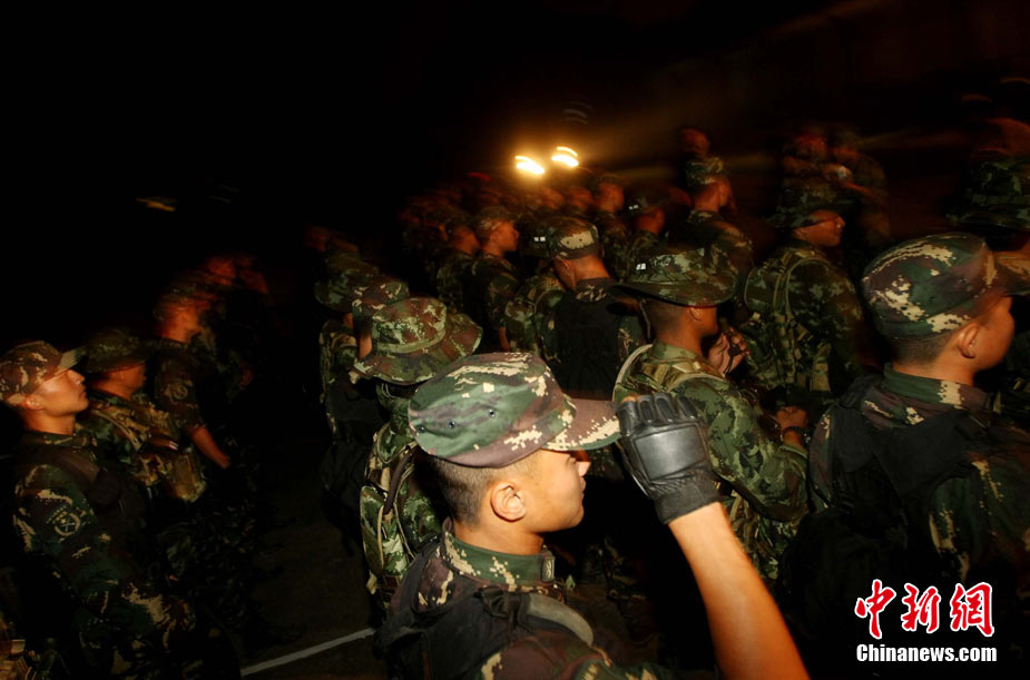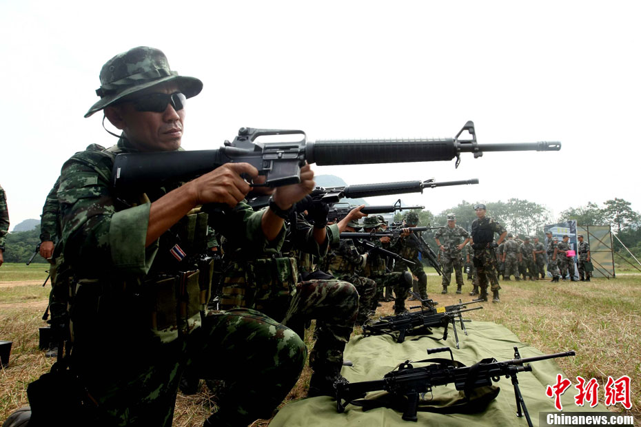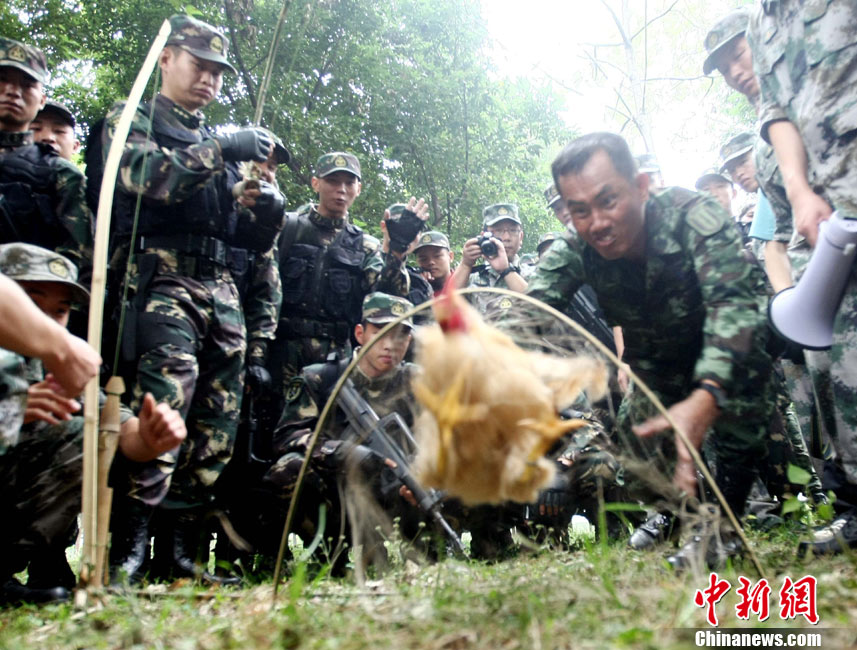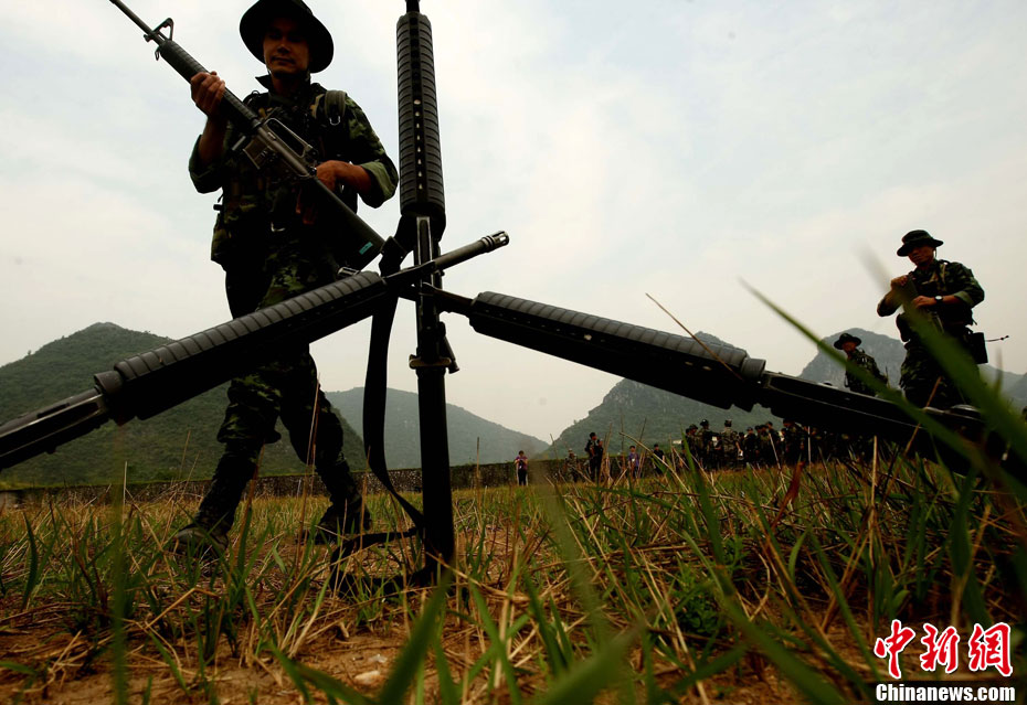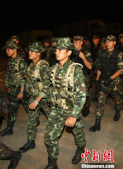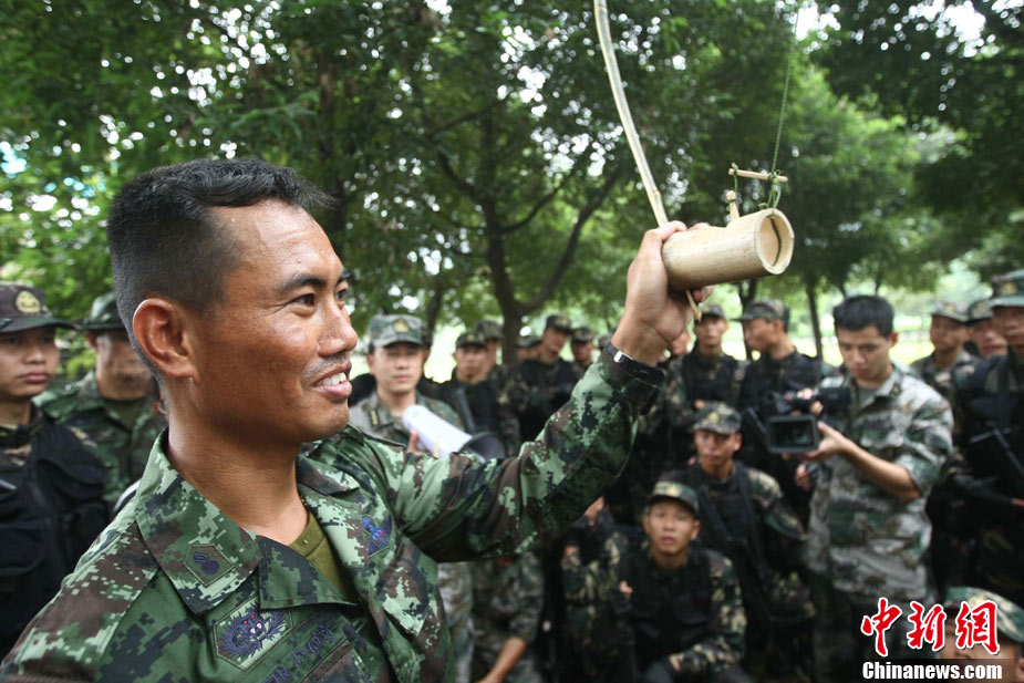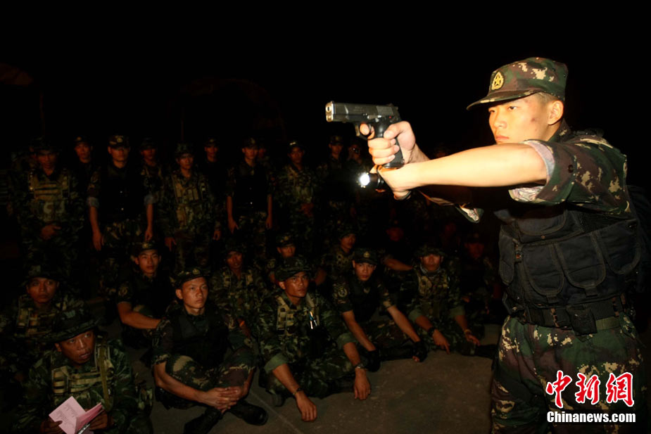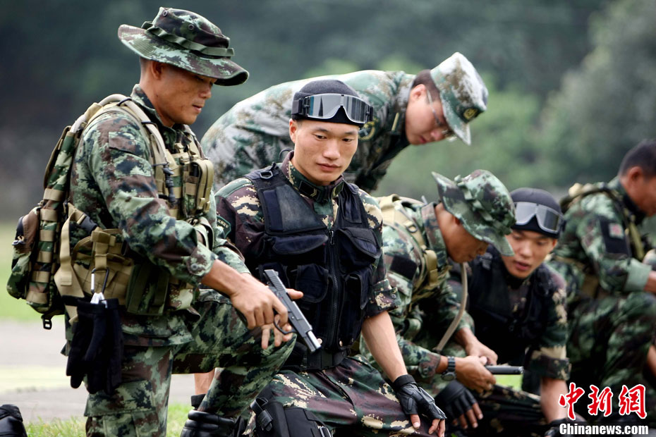 10月8日,中国、泰国两军特种部队“突击—2010”反恐联合训练在广西桂林拉开帷幕,这是两国之间举行的第三次陆军联合训练。分析人士指出,这次联训将进一步巩固两军关系,提高联合反恐作战能力,利于维护地区和平稳定。此次联训为期15天,这是中泰两国陆军首次就城市反恐课题开展联训。图为中国参训部队在开幕式上表演房屋突击。中新社记者 杜洋 摄